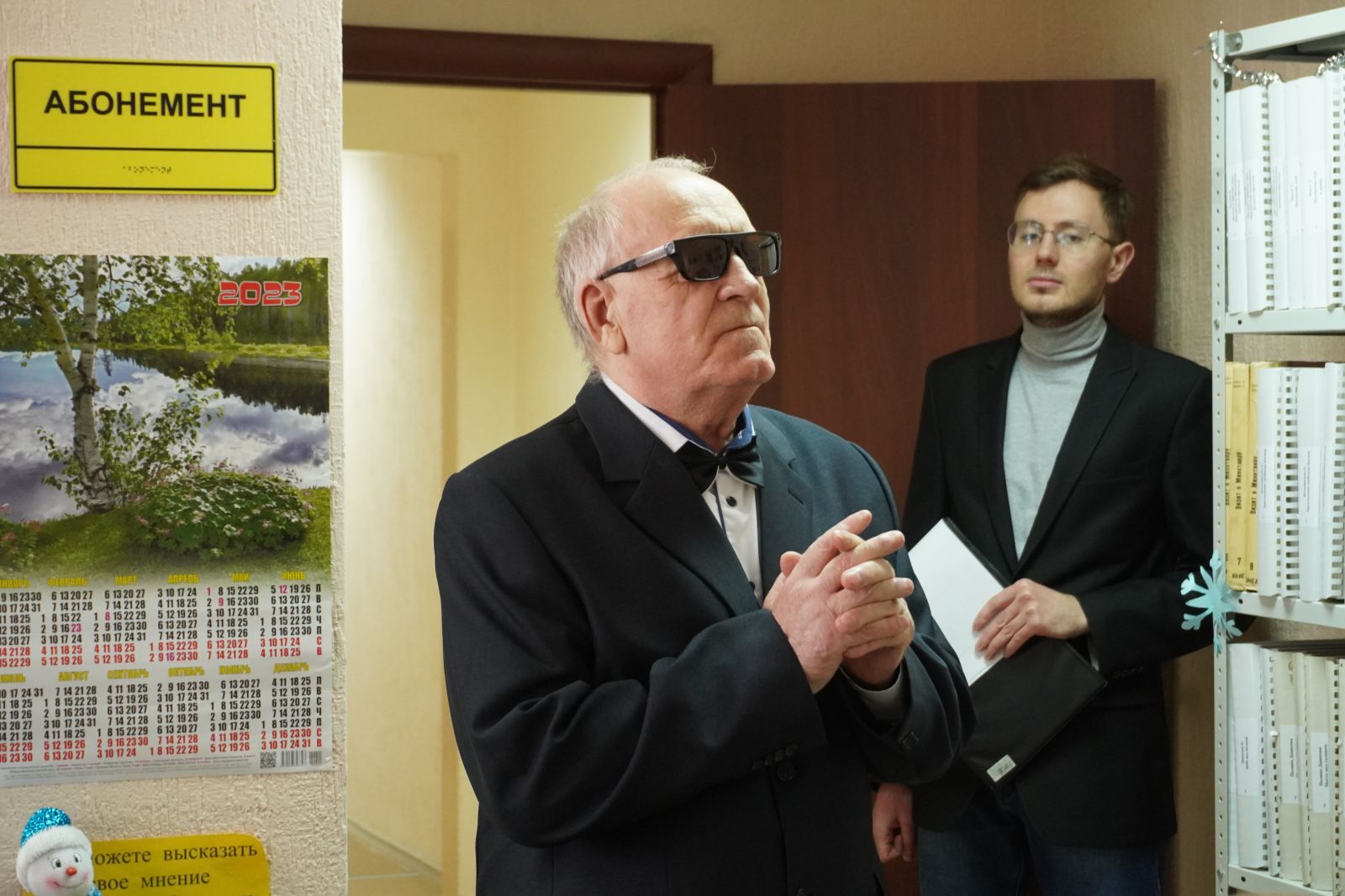 На новоселье пришли десятки людей с белой тростью. Каждому читателю библиотекари помогли освоиться в новом пространстве.