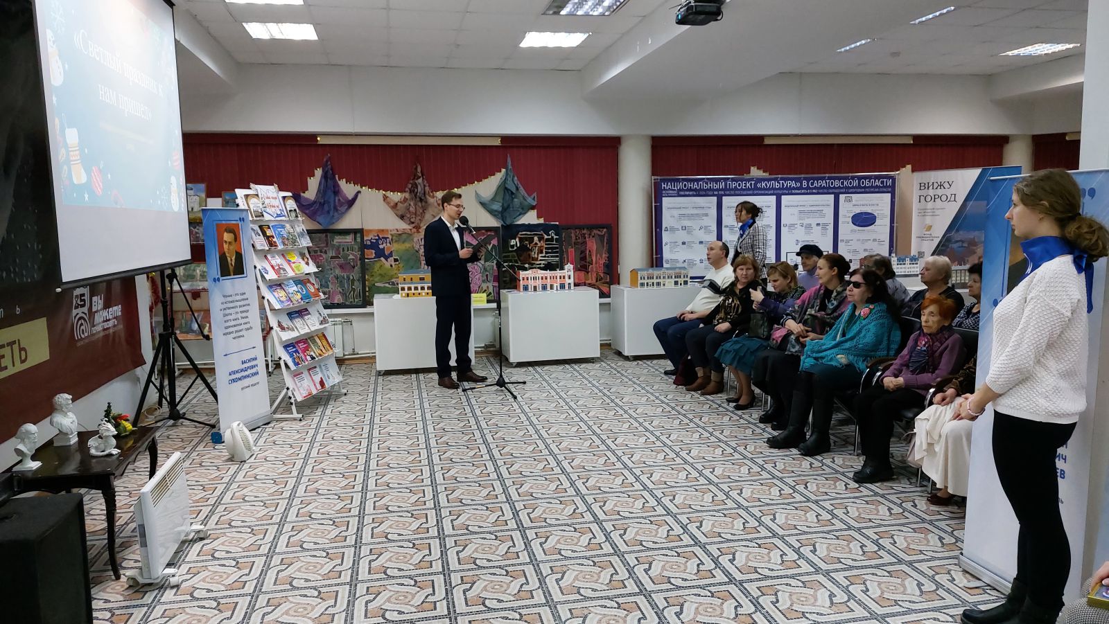 Культурно-просветительское мероприятие ведущий продолжил рассказом об истории возникновения праздника, традициях празднования Нового года и Рождества.