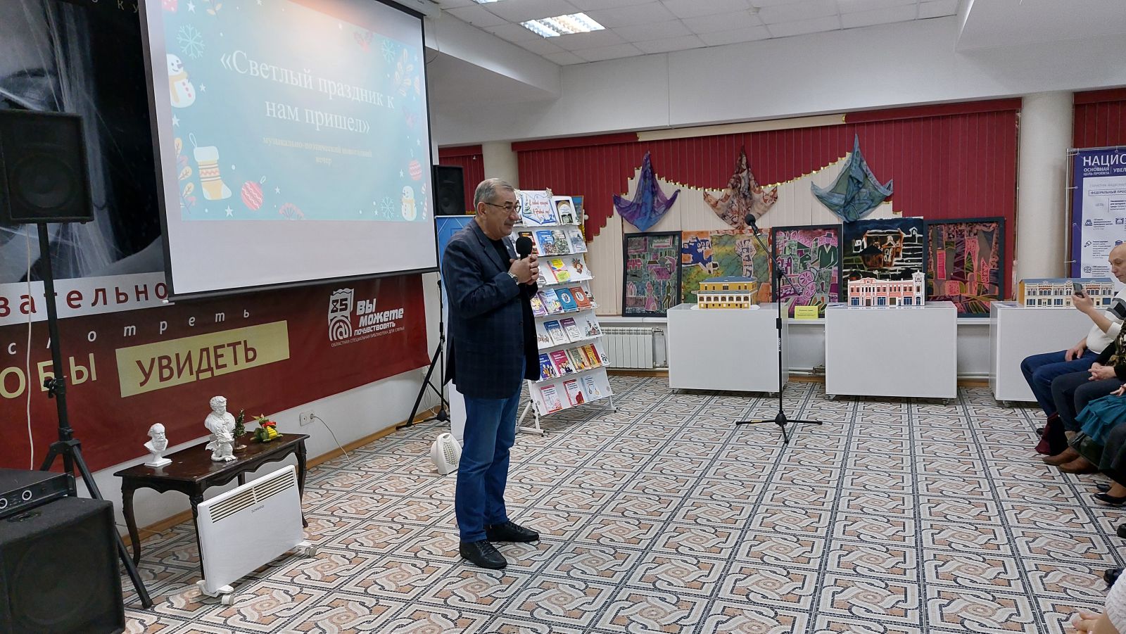 После мероприятия началось живое общение, большой популярностью пользовались наши уникальные книжные выставки, фотозона. Инклюзивное мероприятие «Светлый праздник к нам пришел» завершилось чаепитием. Никто не хотел покидать стен уютной праздничной библиотеки, делились эмоциями, впечатлениями. Библиотека была в этот день многолюдной, гостеприимной, яркой.