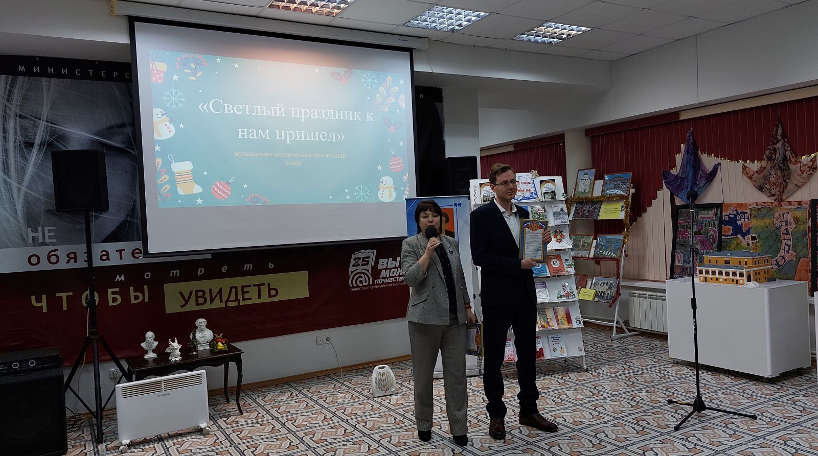 В заключении были названы самые активные читатели книг в нашей библиотеке в 2023 году: самый активный читатель по Брайлю Виктор Анатольевич Немцев; самый активный читатель электронной библиотеки av3715 Валерий Геннадьевич Маяков, самый активный читатель плоскопечатных книг Елена Петровна Ишунина, самый активный читатель книг в специальном формате Ольга Владимировна Мельникова.
