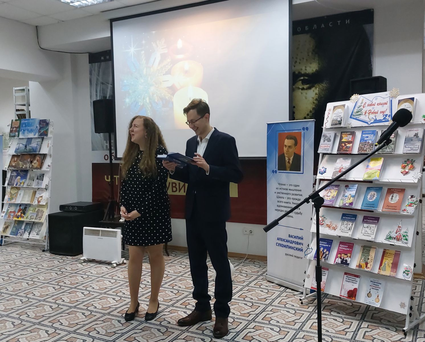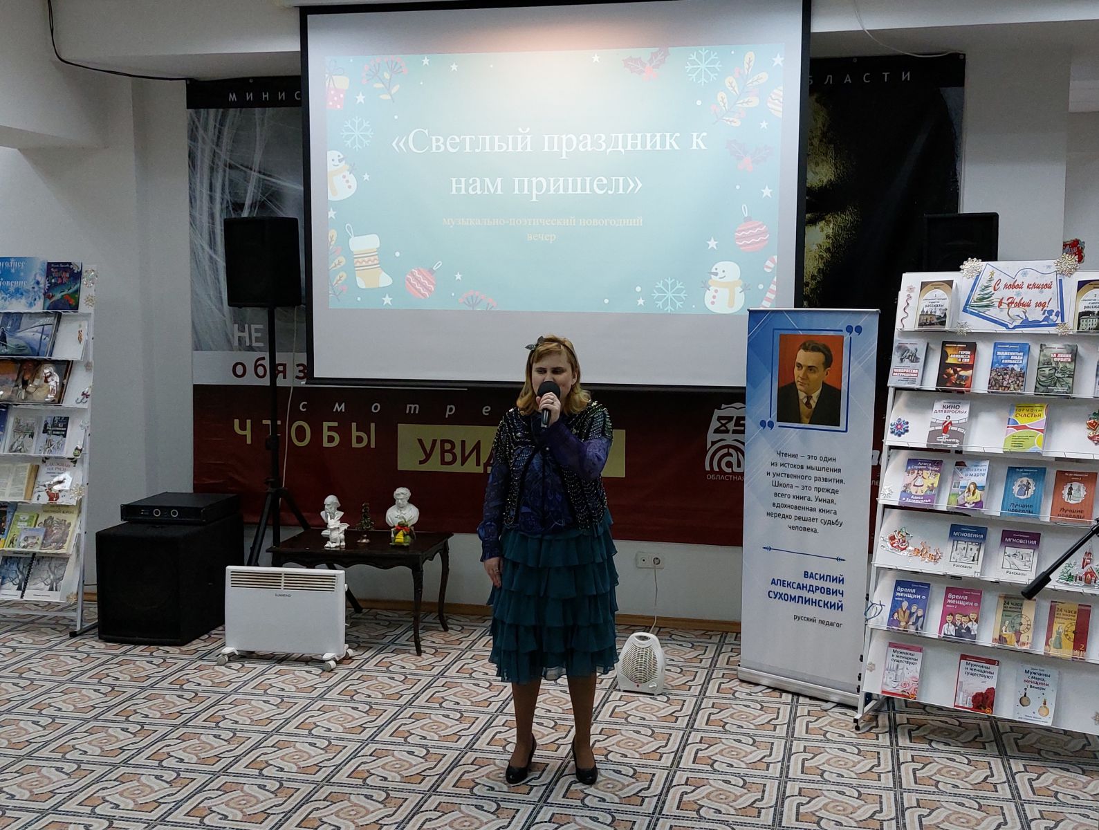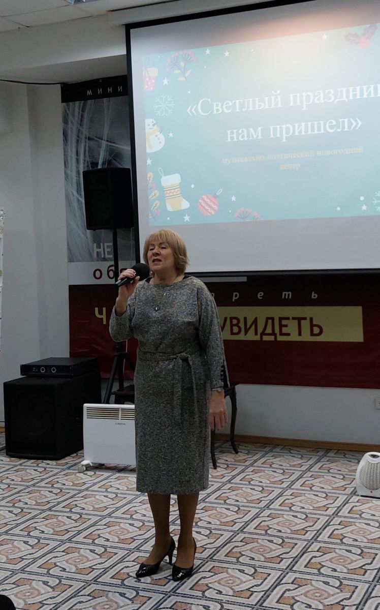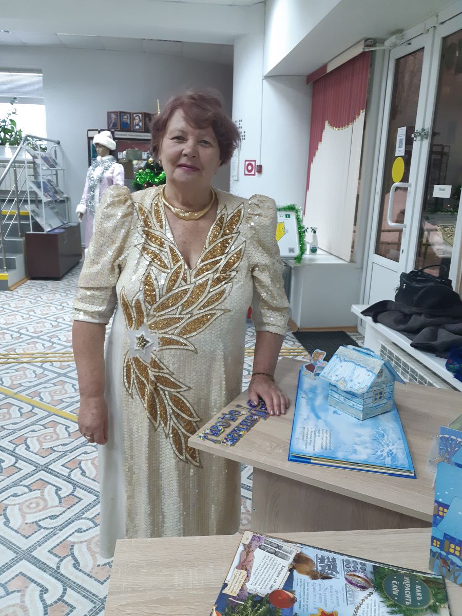 Постоянная читательница Галина Енькова исполнила новогоднюю песню и прочитала стихи, посвящённые Новому году.
