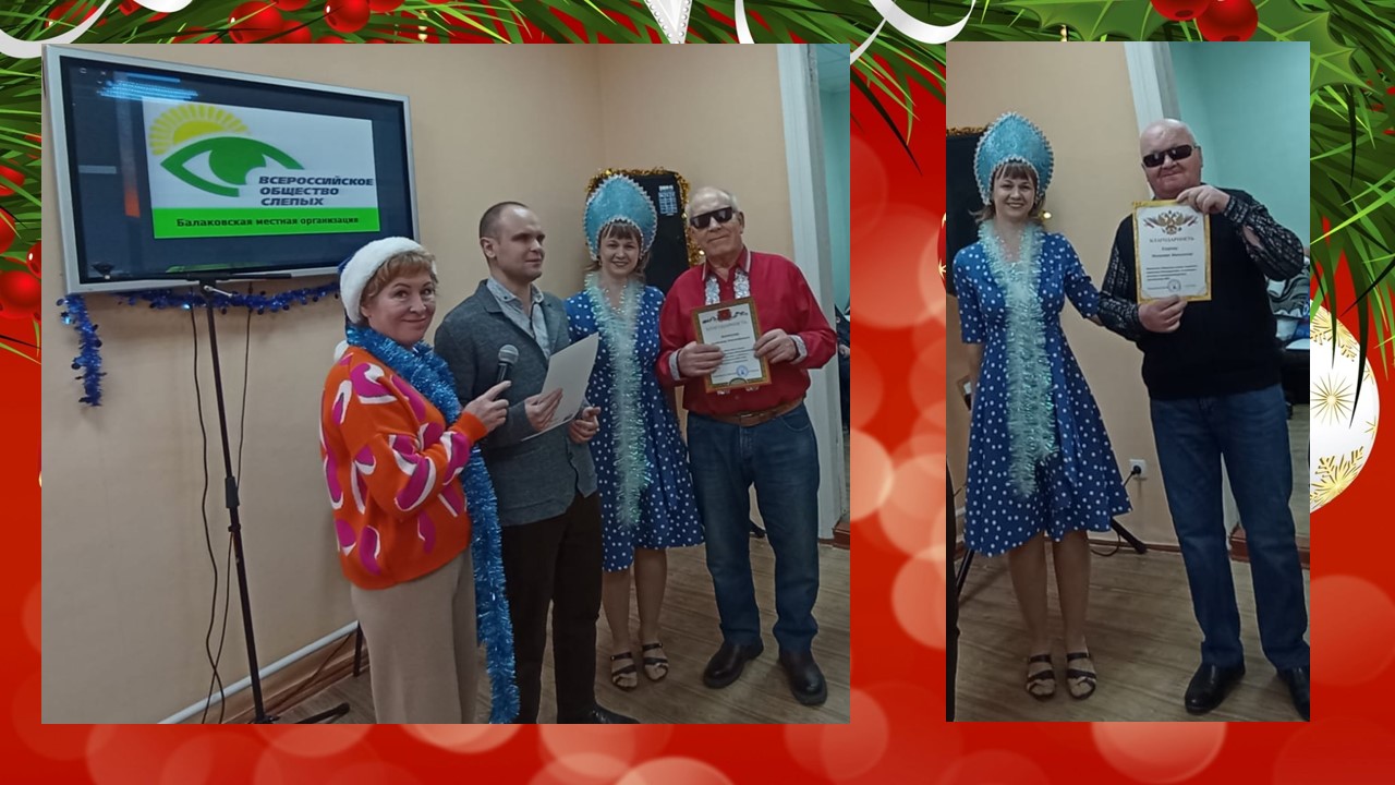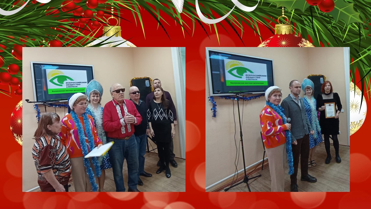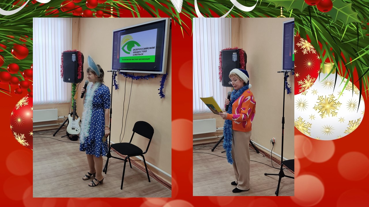 Балаковский филиал Областной специальной библиотеки для слепых провел для членов БМО ВОС библио-кафе, посвященное Новому году и Рождеству. Мероприятие «Весь мир наполнен чудесами…» познакомило с историей и традициями празднования Нового года и Рождества; напомнило творчество писателей, поэтов и музыкантов на новогодние мотивы; свободный микрофон предоставил возможность желающим показать свои таланты в разнообразных жанрах: в вокале, чтении поэтических и прозаических произведений, в том числе собственного сочинения. Прозвучали стихи (С. Есенина «Эх, вы сани», В. Брюсова «Первый снег», Б. Ахмадуллиной «Какое блаженство, что блещут снега») и песни (Н. Зиновьев «Русский ветер», Е. Евтушенко «А снег идёт»). Читателям очень понравились выступления В. Алексеева, Н. Егорова, О. Поимцевой, Л. Спиридоновой и других участников. Читатели узнали много новых произведений классиков о праздновании Нового года и Рождества в России, получили массу положительных эмоций и удивили друзей своими талантами.