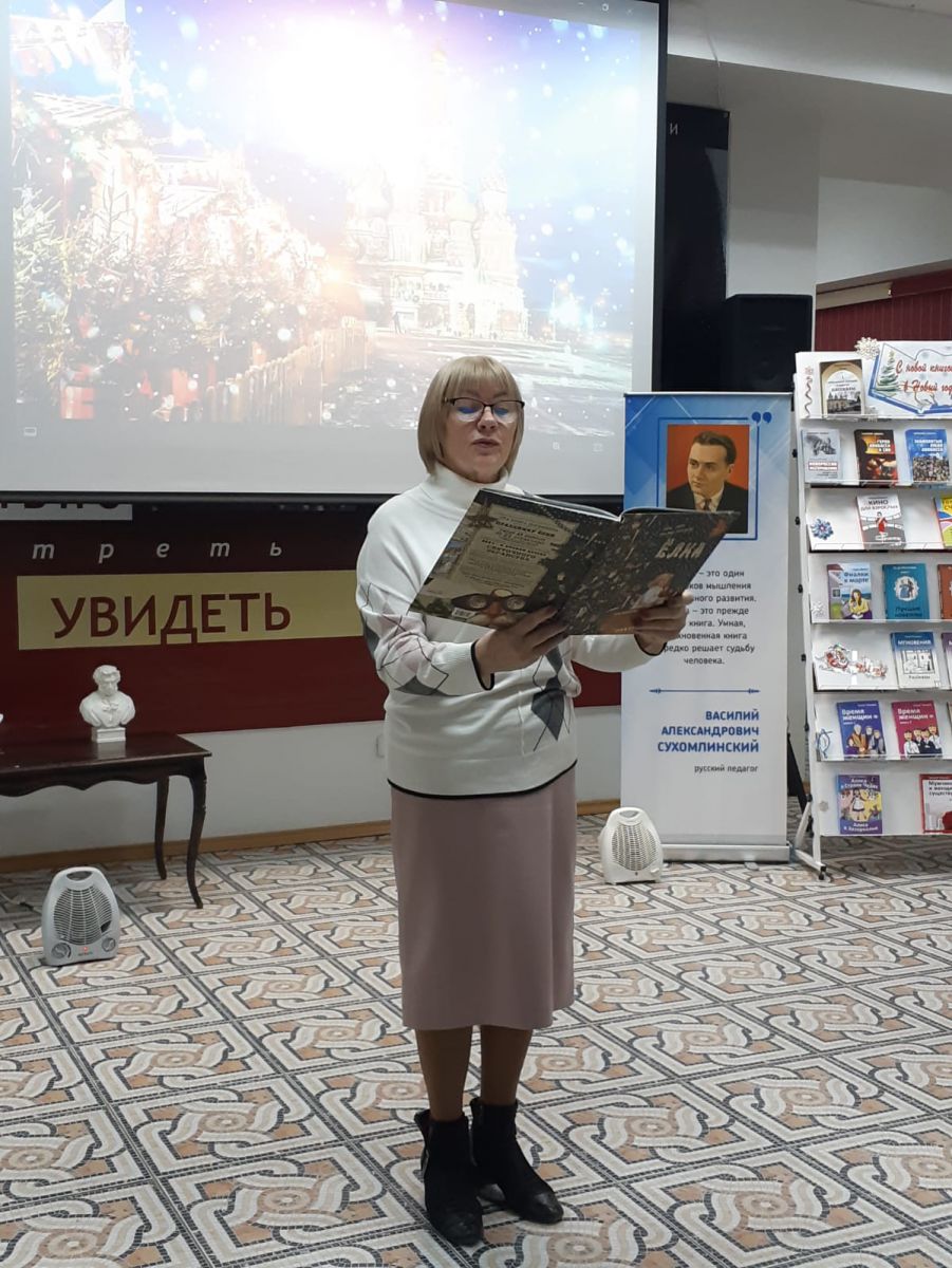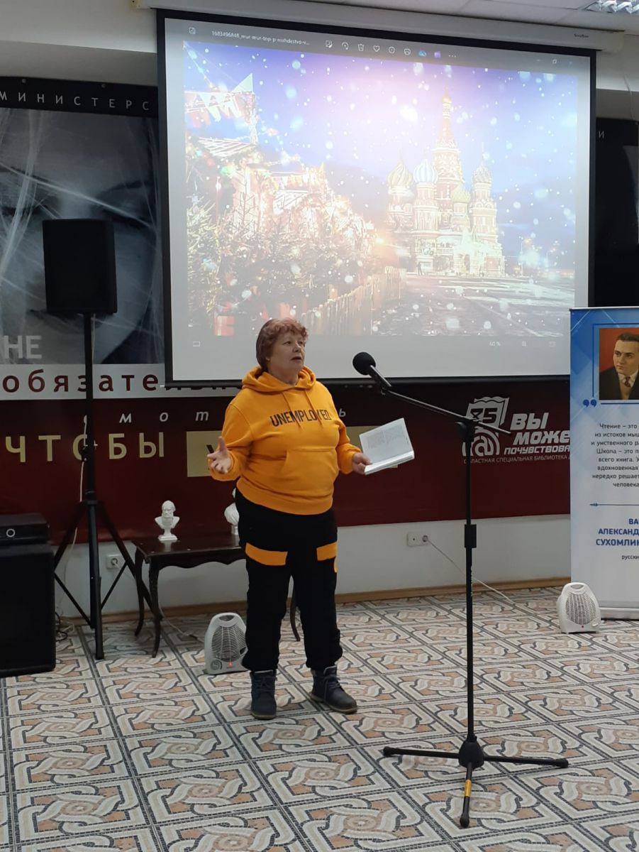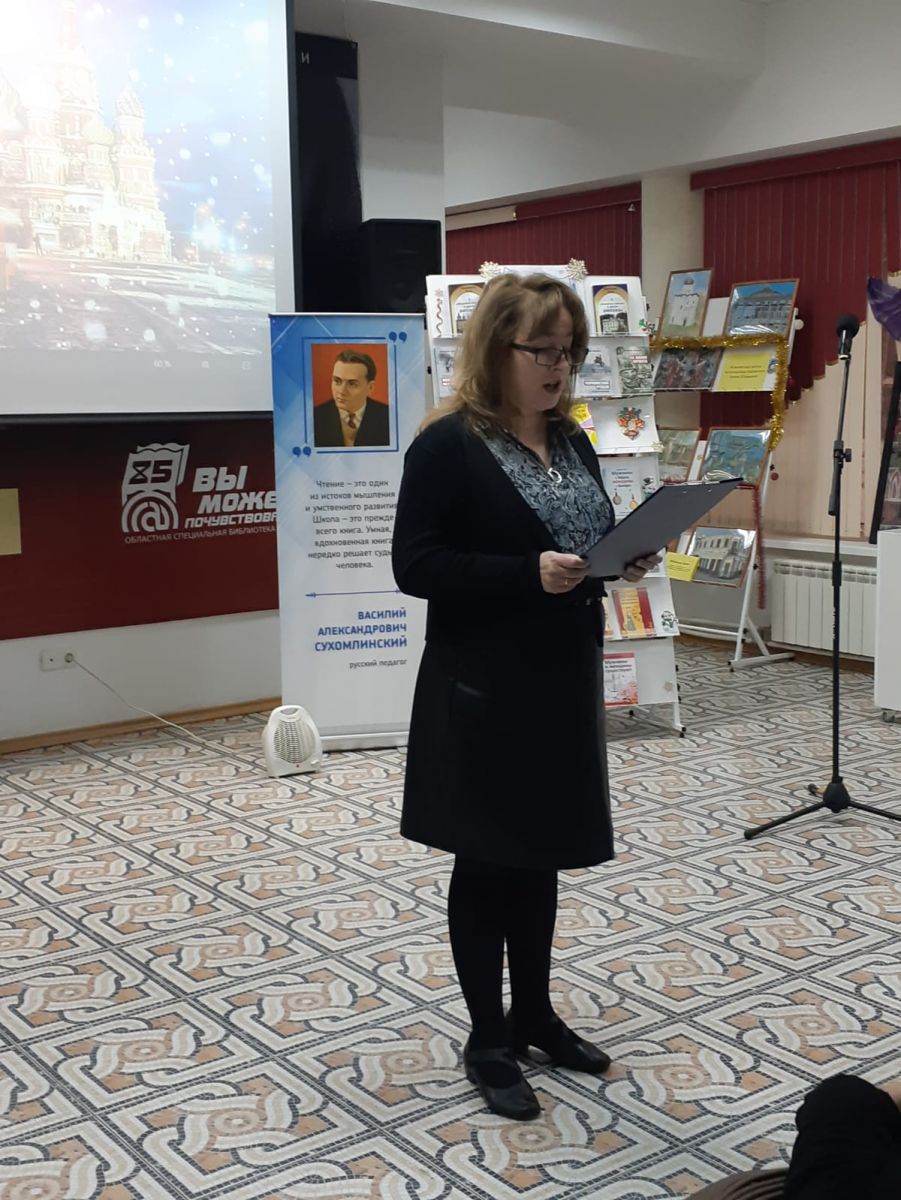 По традиции в канун Рождества 5 января в ГУК «Областная специальная библиотека для слепых» в Детском парке состоялись инклюзивные рождественские чтения. Читателей встречала нарядная ёлка и книжно-иллюстративная выставка «Рождество». Ведущий Артём Бондарев рассказал об истории одного из главных христианских праздников – Рождества Христова. Чтения открыла постоянная читательница Елена Волкова, прочитав наизусть отрывок из книги «Лето Господне» Ивана Шмелёва «Рождество». Валентина Матросова прочитала авторскую сказку. Прозвучали отрывки из повести Николая Гоголя «Ночь перед Рождеством», стихотворение Ф.М. Достоевского «Божий дар», рассказ А.Ф. Давыдова «Хаврошина ёлка». Сотрудник библиотеки Светлана Южакова прочла рассказ В. Никифорова-Волгина «Заутреня Святителей под Новый год». Директор Областной специальной библиотеки для слепых Ольга Новикова поздравила всех с наступающим Рождеством, пожелала мира, добра, рождественских чудес и конечно новых встреч с новыми литературными героями, и прочла сказку В.Ф. Одоевского «Мороз Иванович» и рассказ А. Круглова «Ёлка в царстве зверей». Всем присутствующим были вручены сладкие сувениры от Депутата Государственной Думы Николая Васильевича Панкова.