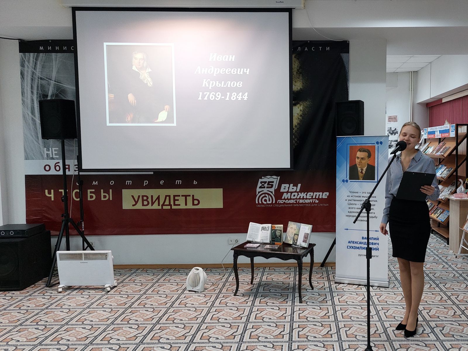 13 февраля в Областной специальной библиотеке для слепых прошла литературная гостиная, посвящённая 255-летию со дня рождения писателя и драматурга И. А. Крылова (1769 – 1844).