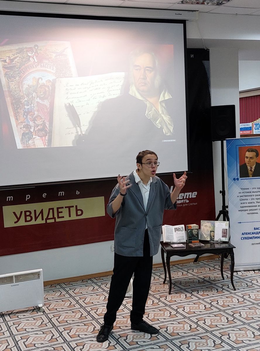 Читатель библиотеки Роман Никонов прочитал басню «Лещи».