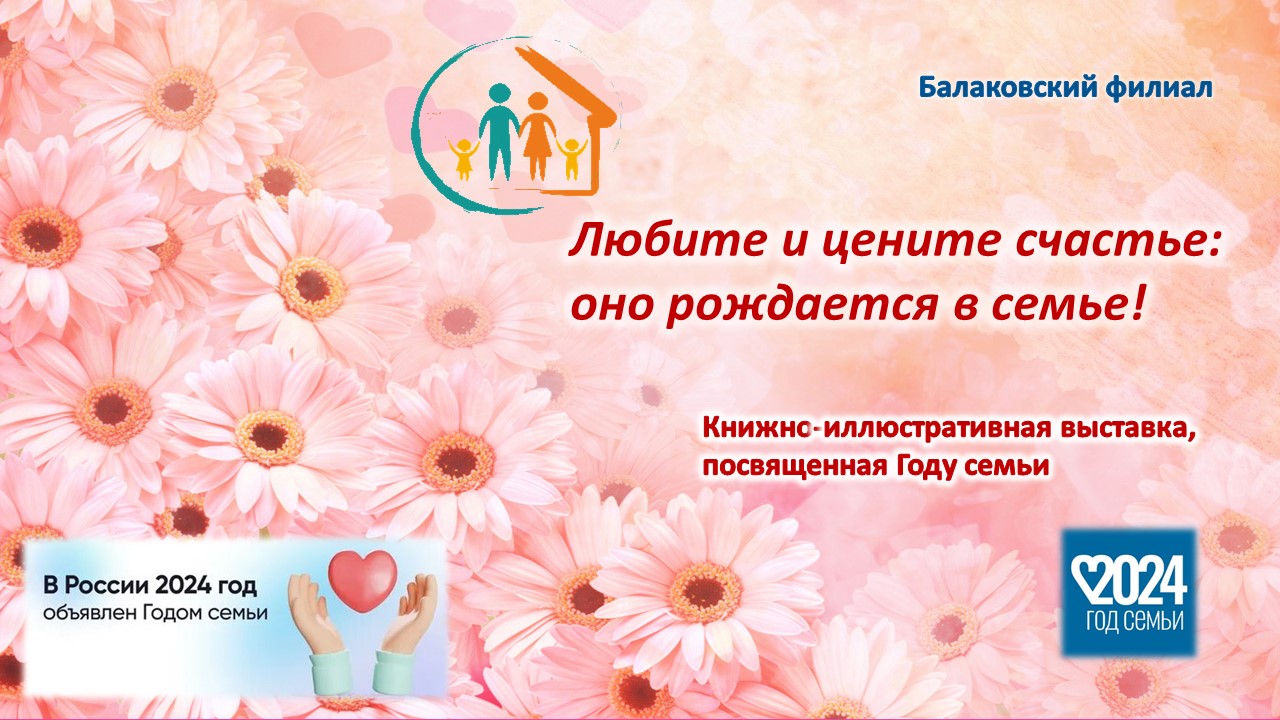 В Балаковском филиале Областной специальной библиотеки для слепых работает книжно-иллюстративная выставка «Любите и цените счастье: оно рождается в семье!», посвященная Году семьи. На выставке представлена художественная литература и публицистика на разных носителях и разных форматов, рассказывающая о роли семьи в современном обществе, истории развития семейных отношений с древних времен до наших дней, о проблемах воспитания детей, здоровом образе жизни, активном семейном отдыхе.