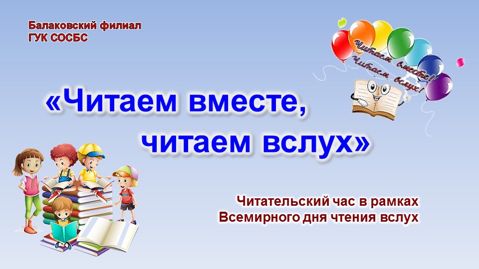 День чтения вслух в Балаковском филиале Областной специальной библиотеки для слепых прошел увлекательно и интересно! Он дал отличную возможность в очередной раз соприкоснуться с творчеством любимых писателей и поэтов. Читайте вслух, делитесь любимыми книгами и привлекайте других к магии слов.