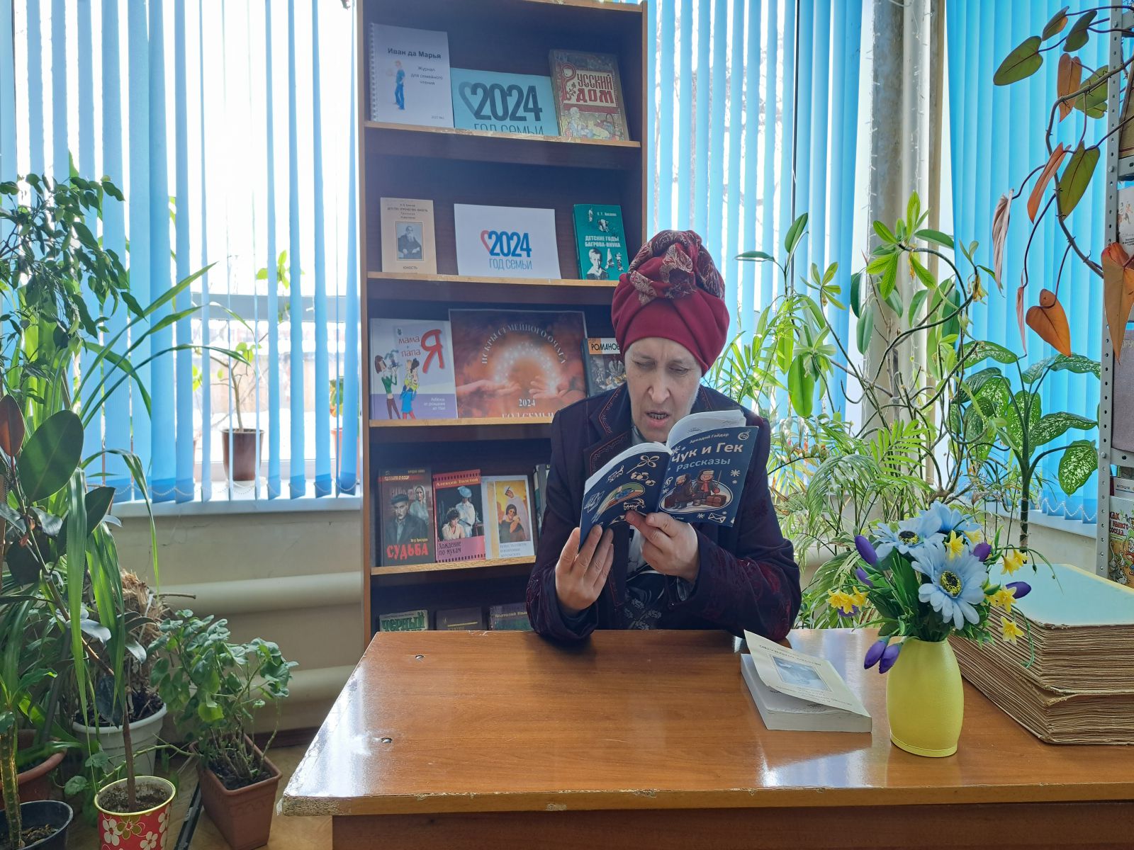 Наши читатели Галина Ковалева, Елена Кемешева, Василий Пыхтунов и сотрудники библиотеки читали отрывки из книг И. Тургенева «Отцы и дети», А. Гайдара «Чук и Гек», А. Толстого «Детство».