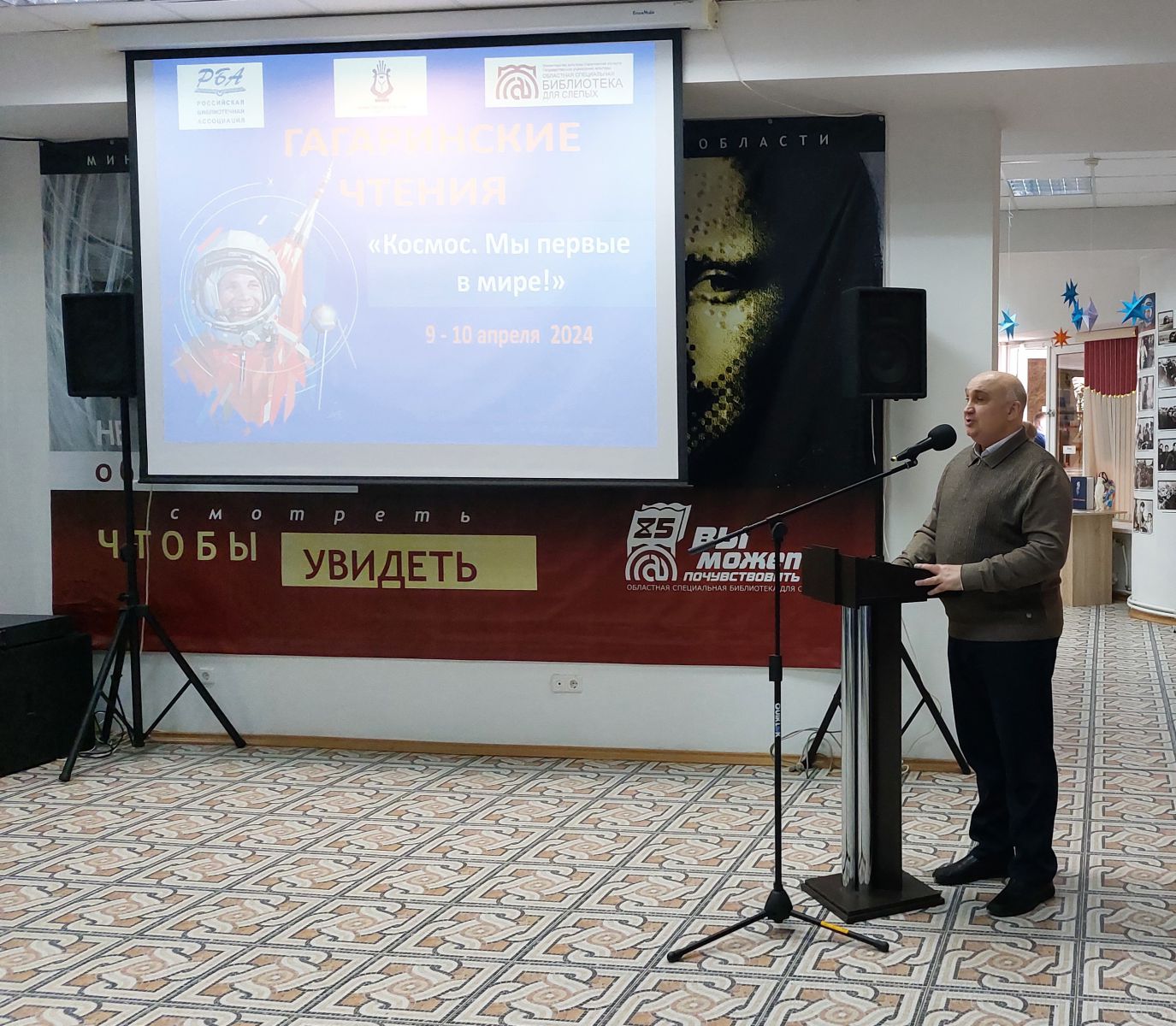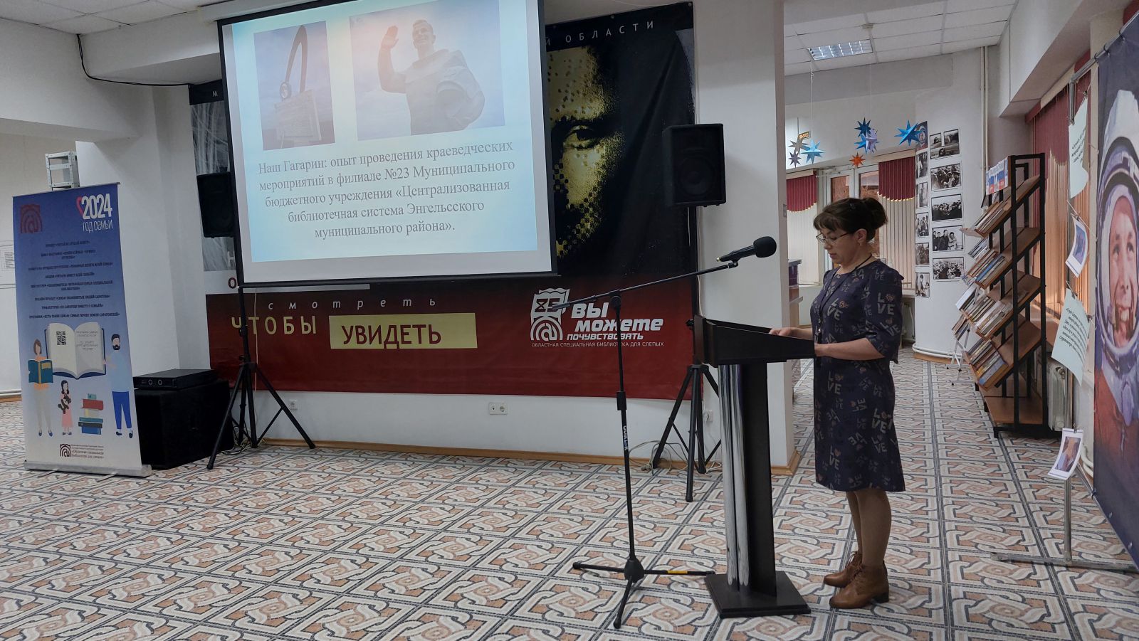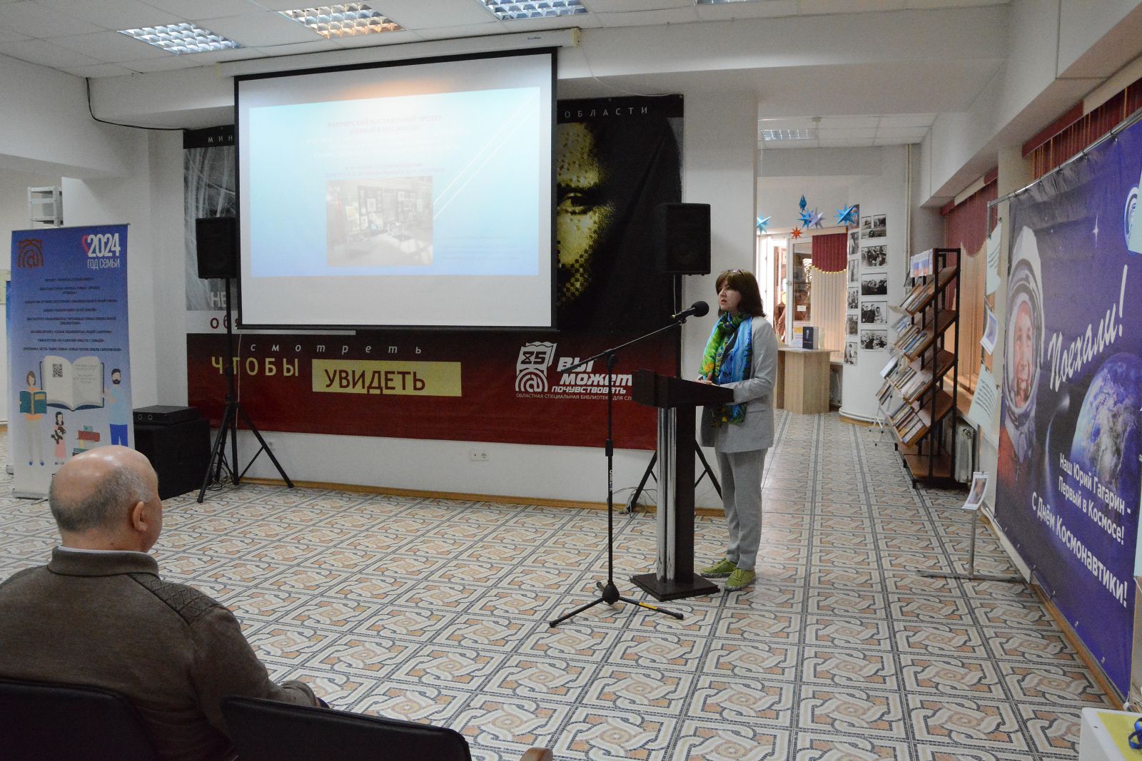 В Год семьи в честь 90-летнего юбилея первого космонавта нашей планеты, героя Советского Союза, лётчика-космонавта Юрия Гагарина в ГУК «Областная специальная библиотека для слепых» 9-10 апреля 2024 года состоялись Четвёртые Гагаринские чтения «Космос. Мы первые в мире!»