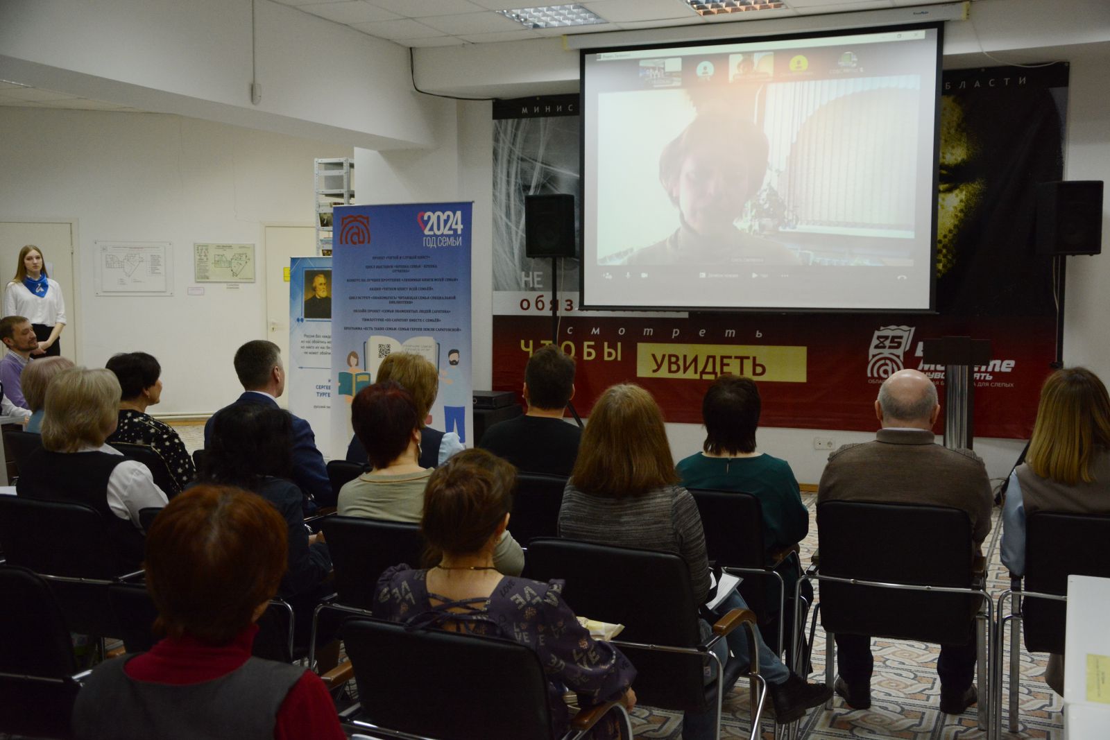 В зале присутствовали представители общественных организаций, ВОС, областных библиотек, ЦБС г. Саратова и Саратовской области, музеев, Саратовского Областного Дома работников искусств, волонтёры движения «Абилимпикс».
