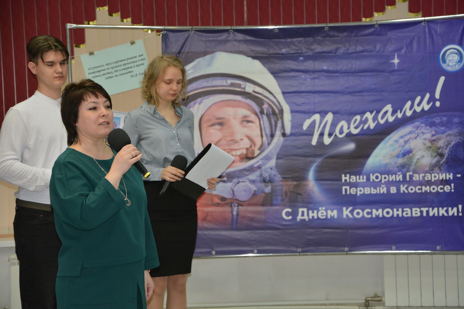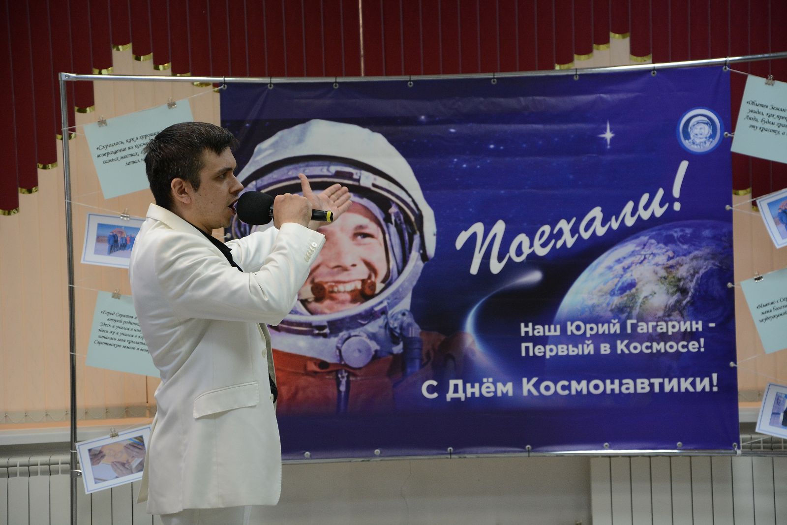 Затем прозвучала одна из самых любимых песен о космосе «Он сказал, поехали!» в исполнении солиста Саратовского Областного Дома работников искусств Павла Хабиби.