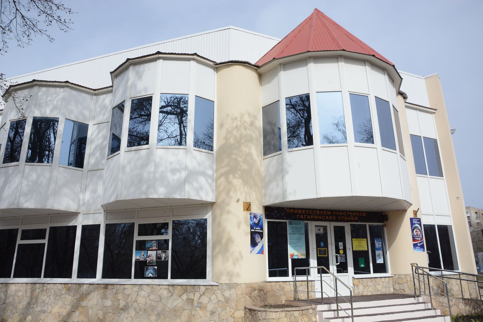 Здание библиотеки было украшено растяжкой-баннером с приветствием участникам Гагаринских чтений. В библиотеке работала космическая фотозона.