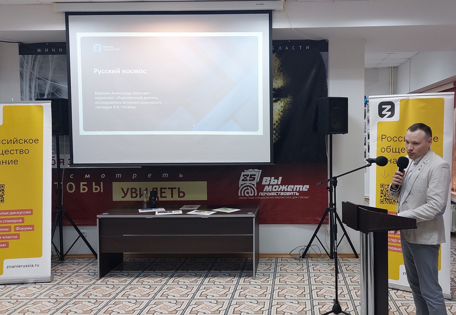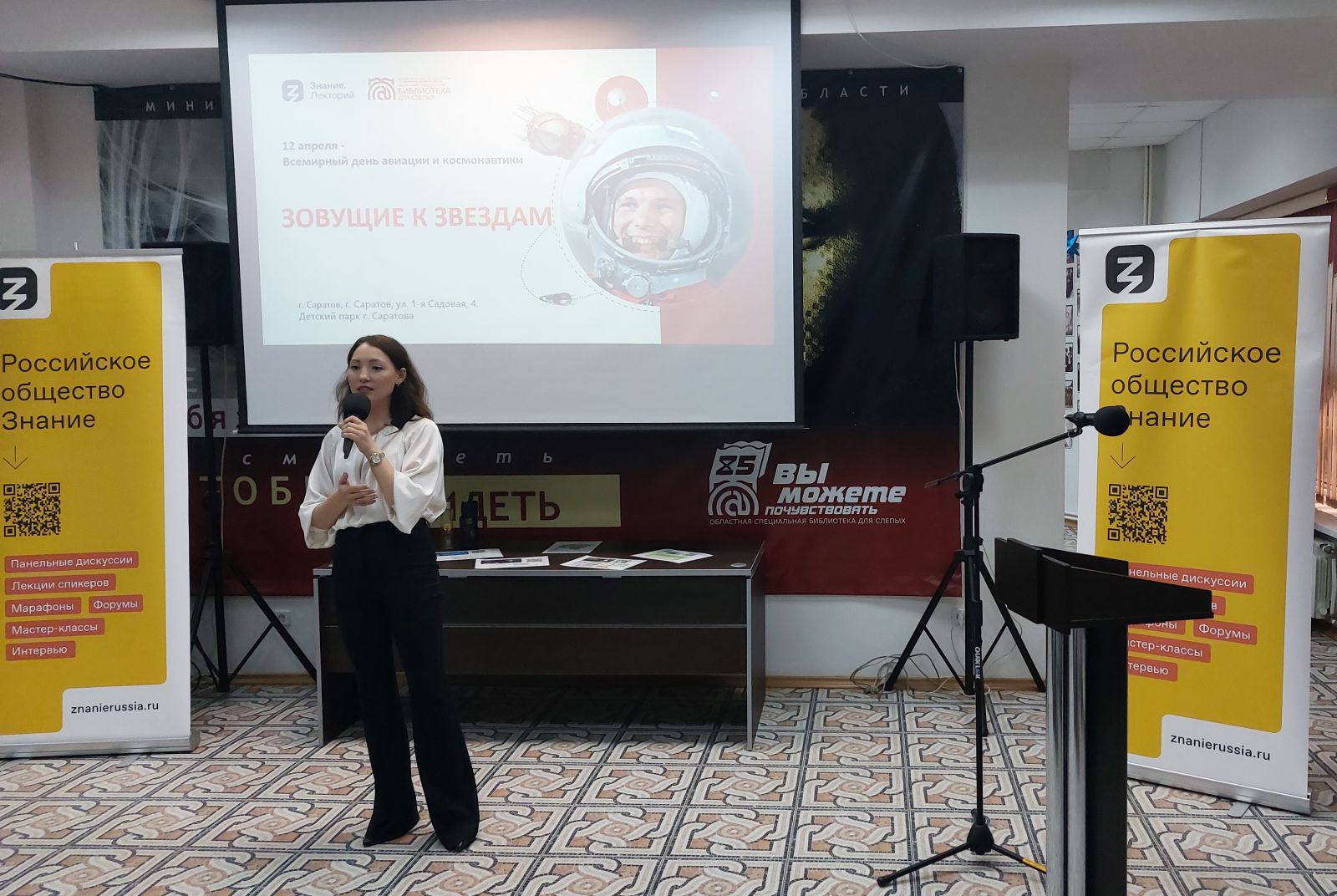 12 апреля в Областной специальной библиотеке для слепых прошло просветительское мероприятие «Зовущие к звёздам», посвящённое Дню космонавтики, в партнёрстве с Саратовским филиалом Российского общества «Знание».