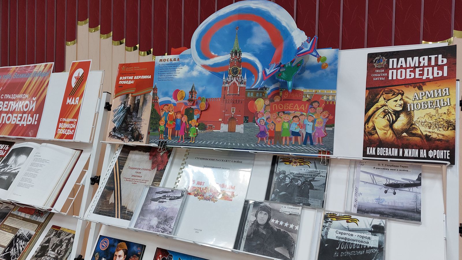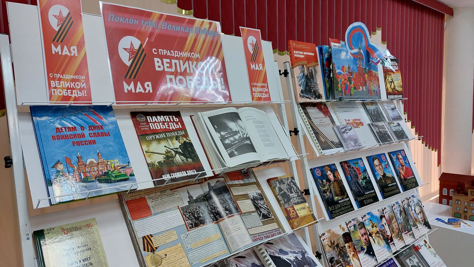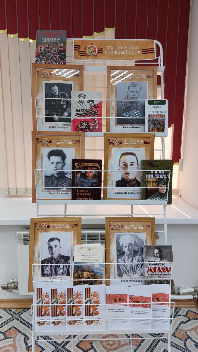 Здание библиотеки и зал для массовых мероприятий были торжественно украшены. Библиотека и все филиалы принимают в акциях «Окна Победы», «Стена Памяти», «Бессмертный книжный полк».