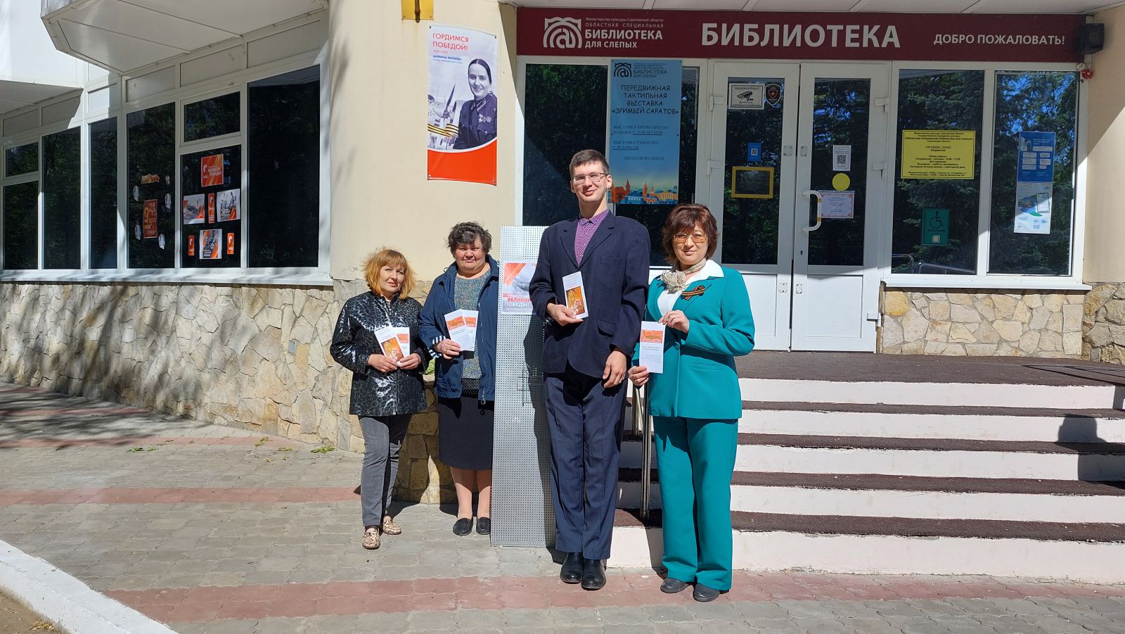 В преддверии Дня Победы сотрудники Центра социально-значимой и правой информации Областной специальной библиотеки для слепых провели информационную акцию «Этот день Победы». Рамках акции были подготовлены тематические буклеты и оформлен стенд. Буклеты содержали напутствия и поздравления с праздником, а также список литературы о Великой Отечественной войне.