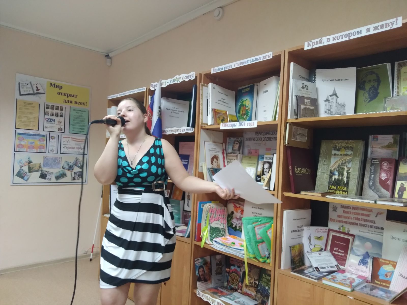 Балаковский филиал Областной специальной библиотеки для слепых подготовил урок музыки и литературы, посвящённый Дню России, для читателей библиотеки, в том числе членов Балаковской местной организации Всероссийского общества слепых.