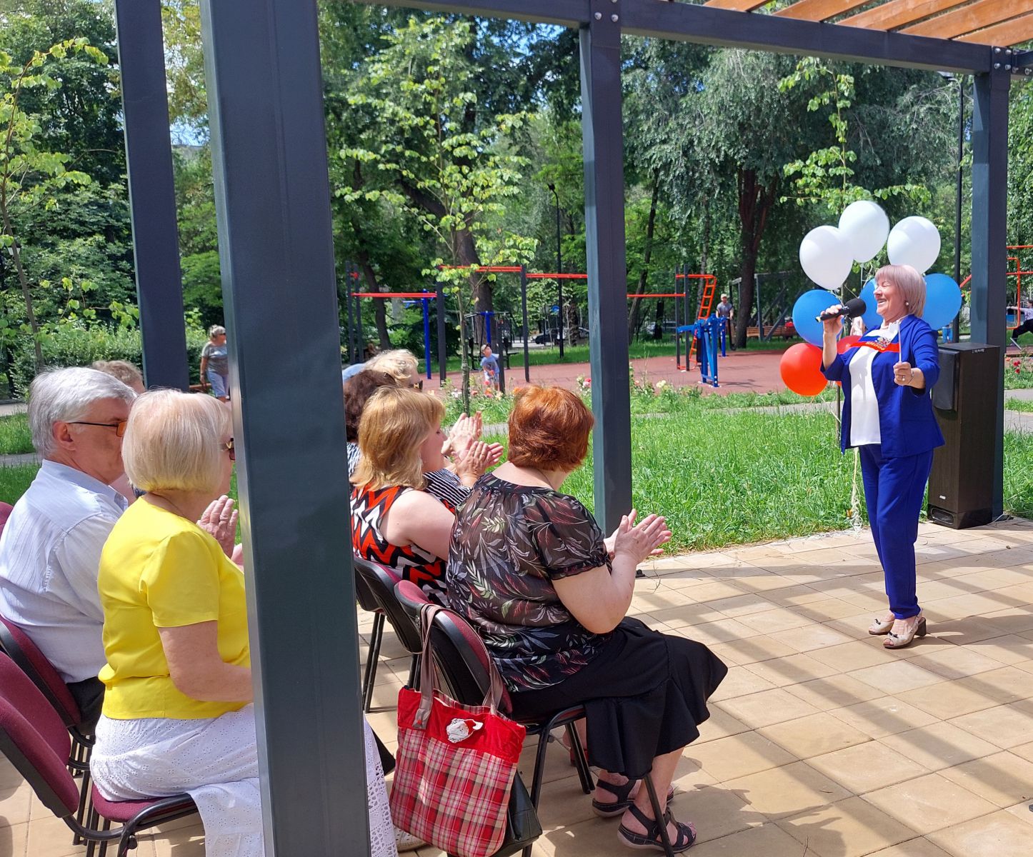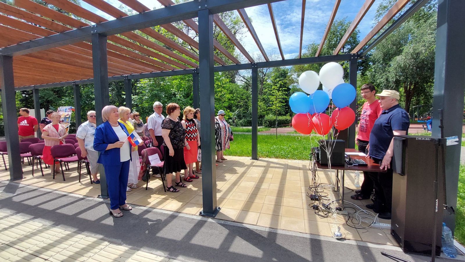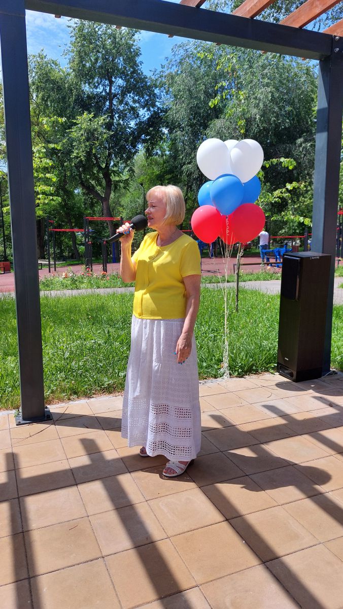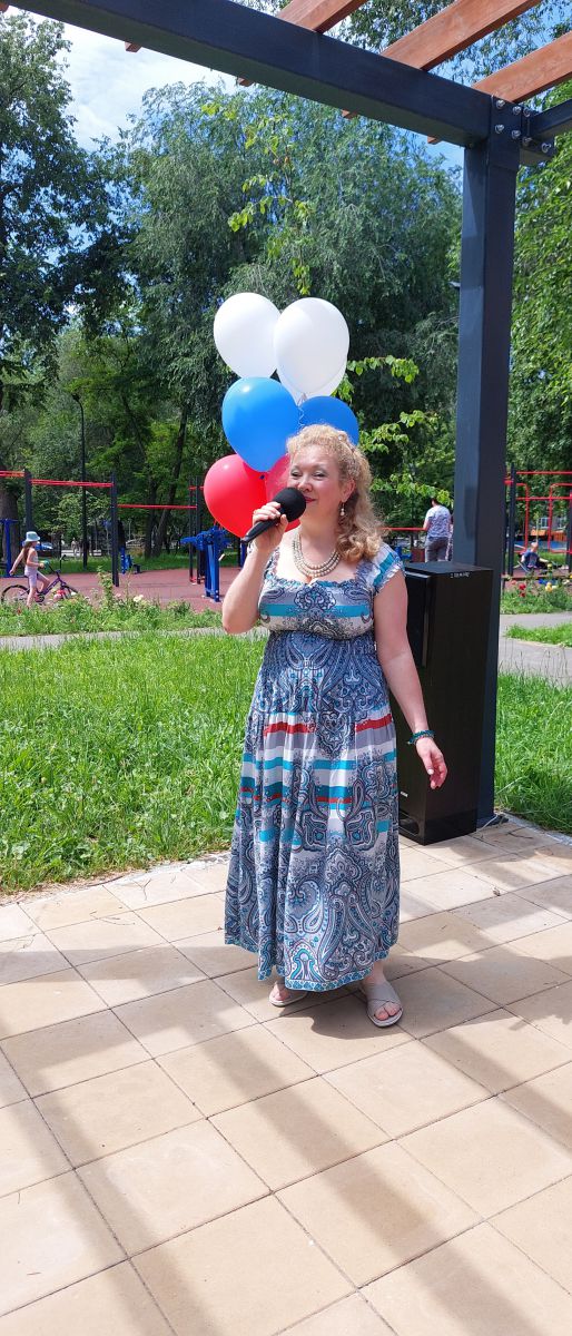 В Детском парке праздничная тематическая программа «С любовью и верой в Россию» состоялась в Летнем читальном зале, где была представлена информационная презентация выставки в различных форматах «Тебе, Россия, посвящается». Началось мероприятие с государственного гимна Российской Федерации. В рамках концертной программы в исполнении наших читателей прозвучали трогательные стихотворения о России А.С. Пушкина, С. Есенина, Э Асадова (в исполнении Елены Волковой, Анны Напольниковой и Сергея Иванова), а также замечательные музыкальные композиции в исполнении Ольги Куликовой, Галины Еньковой и Елены Зверевой.