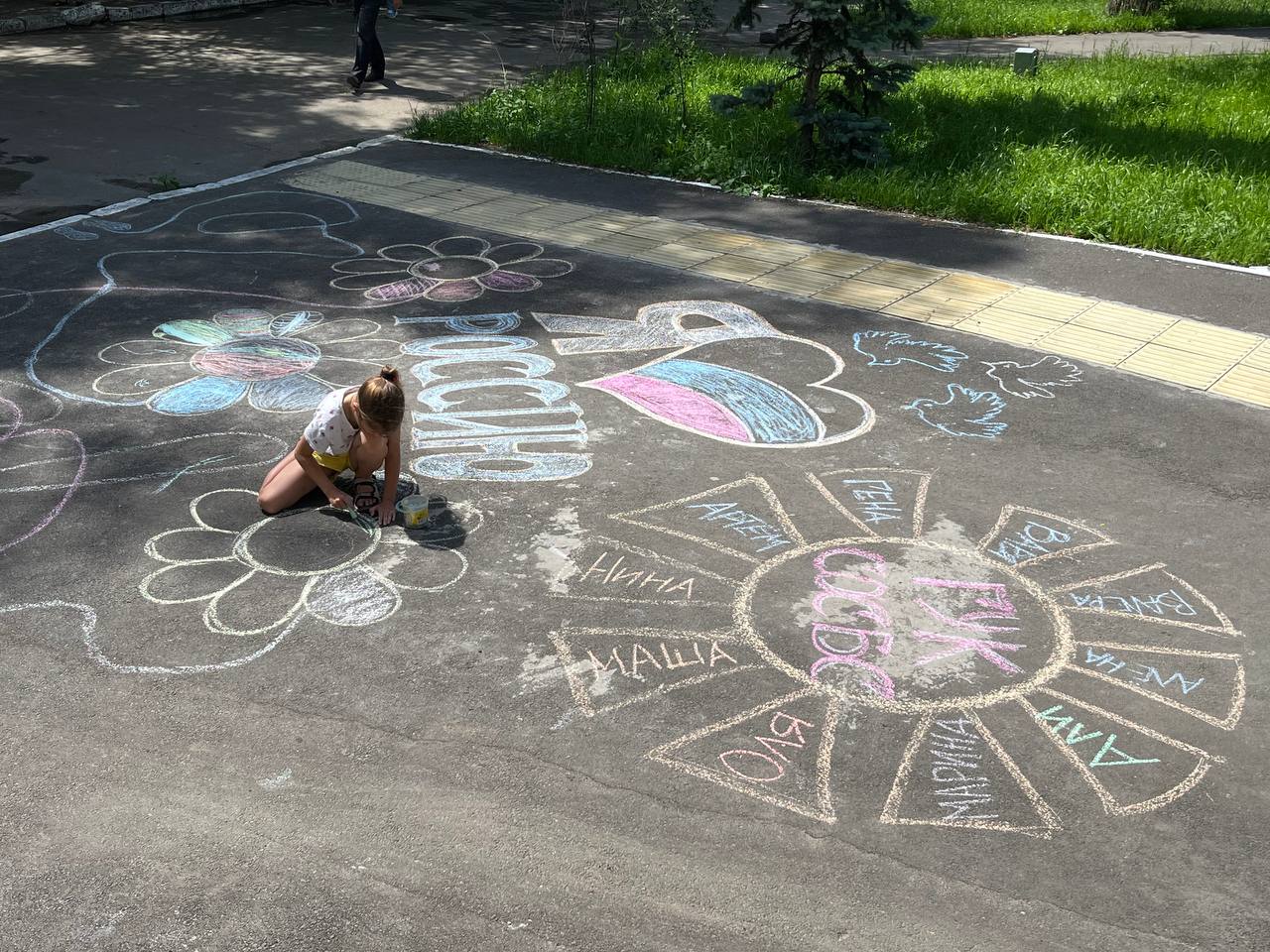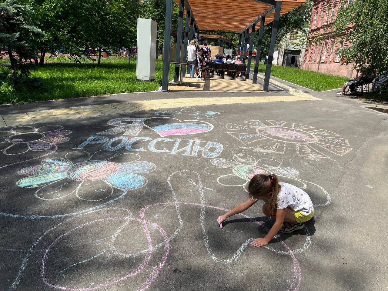 В заключение праздничной программы была открыта интерактивная зона «Открой для себя Россию», где каждый смог пройтись по лабиринту из государственных символов и нарисовать на асфальте свою Россию.
