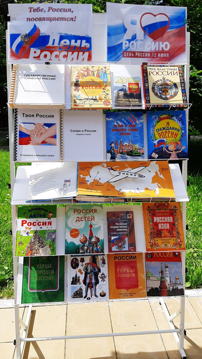 Ко Дню России в библиотеке оформлена выставка «Тебе, Россия, посвящается!».