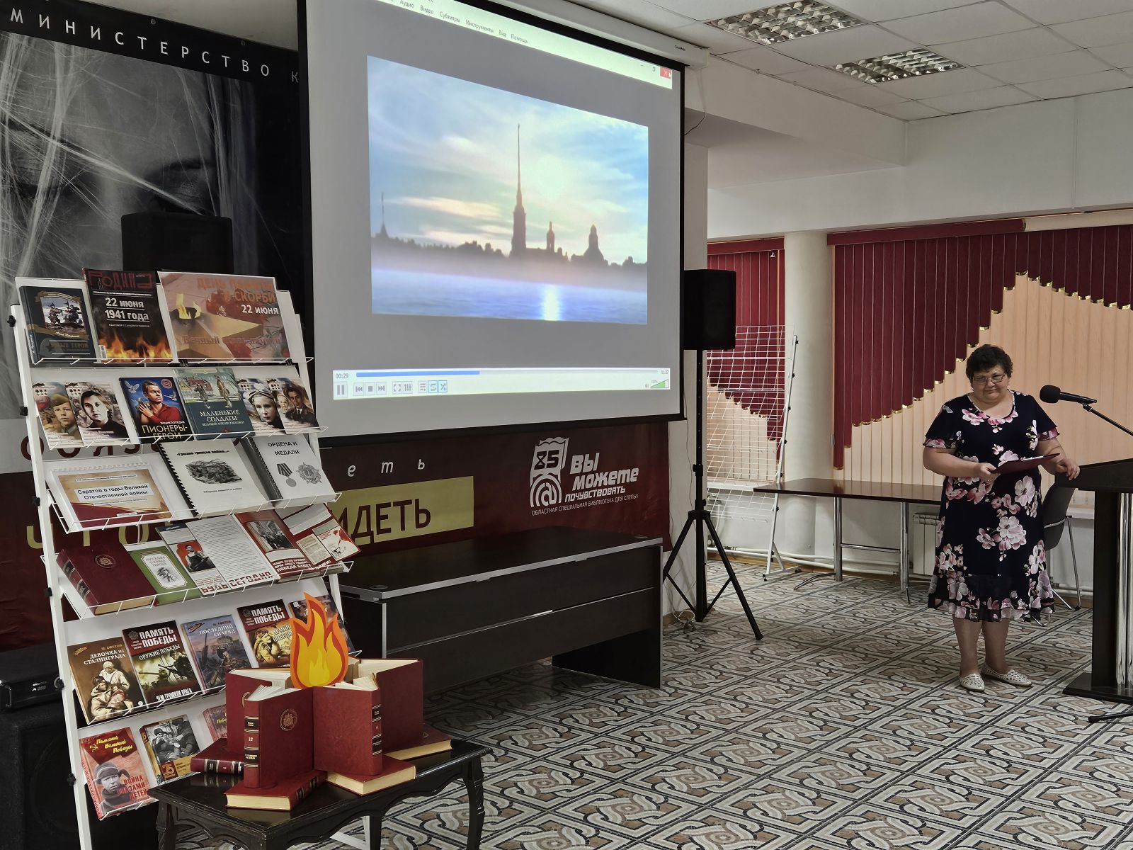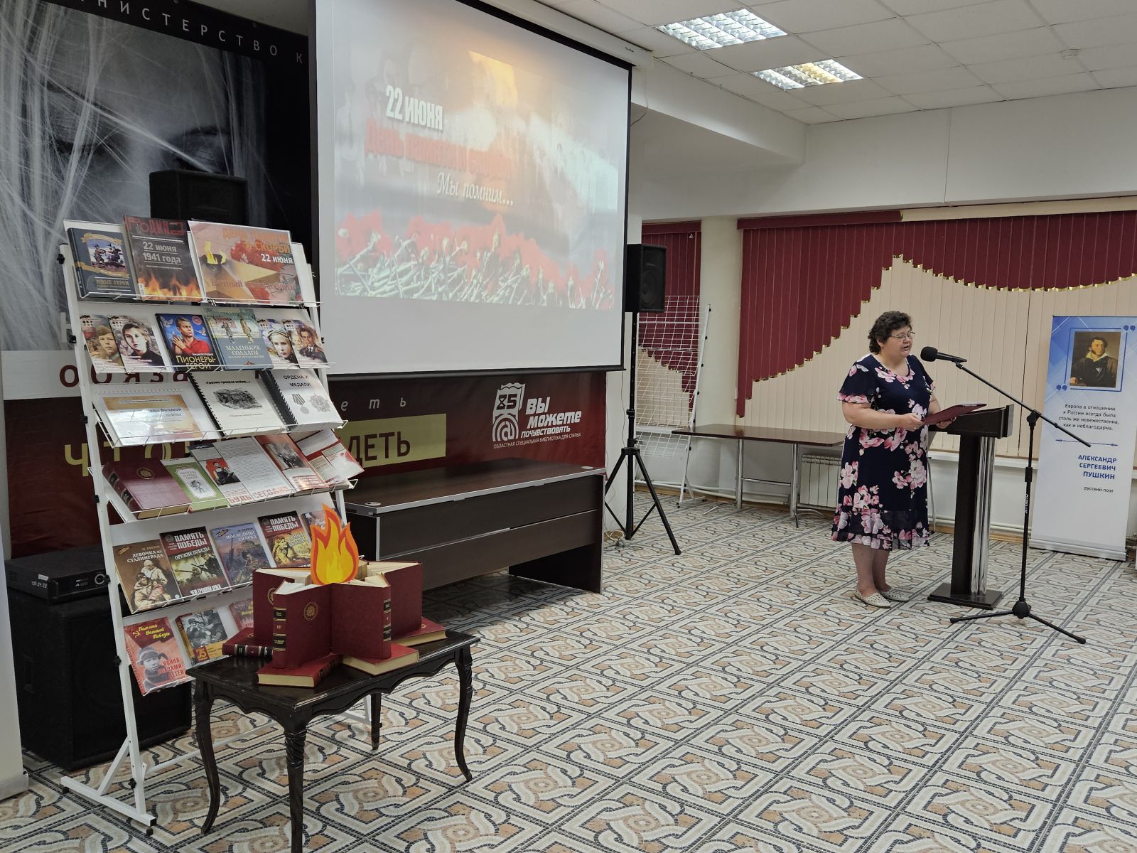 В День памяти и скорби в России отдают дань уважения тем, кто погиб в годы войны, трудился в тылу во имя Великой Победы, чтобы сохранить в памяти поколений их подвиг. Вместе с читателями мы вспоминаем родных и близких, павших в самой кровопролитной войне. В эти дни мы чтим память каждого, кто ценой своей жизни сохранил мир на нашей земле. Мы напомнили всем участникам мероприятий в наших библиотеках, что 22 июня в 12 часов 15 минут по московскому времени, в День памяти и скорби, в России одновременно будет объявлена Всероссийская акция «Минута молчания». В одну общую минуту 22 июня объединится вся страна от Камчатки до Калининграда.
