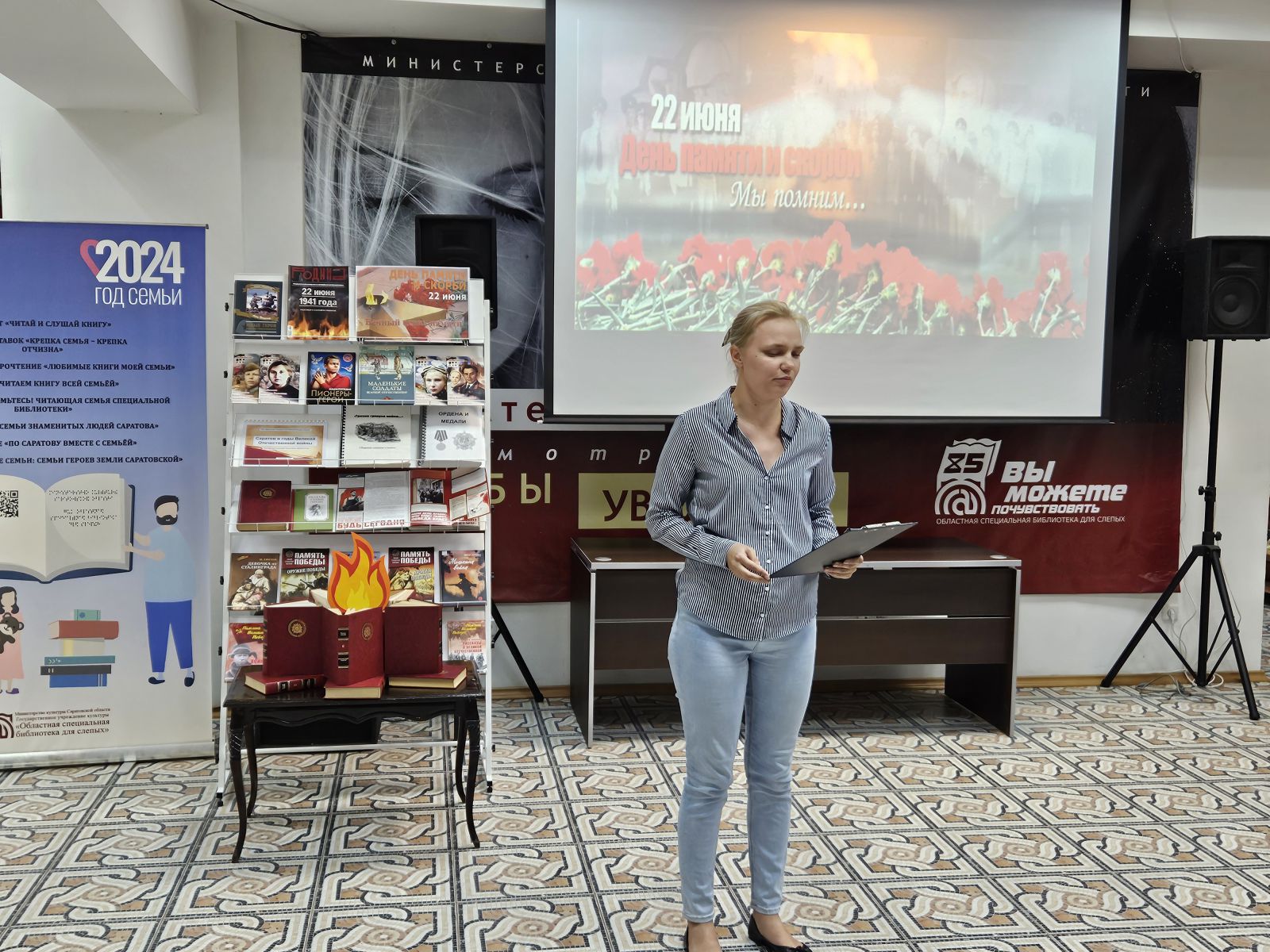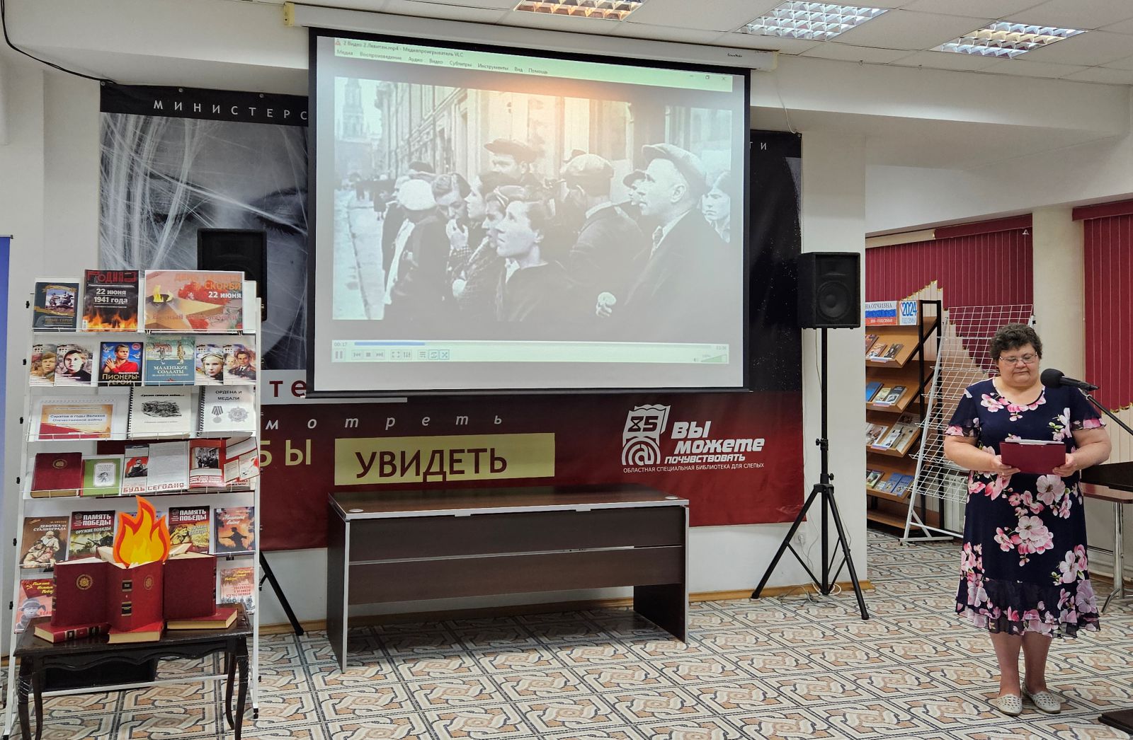 Накануне знаменательной даты в истории нашей страны – 22 июня 1941 года – Дня памяти и скорби – дня начала Великой Отечественной войны – в ГУК «Областная специальная библиотека для слепых» и её филиалах проходят встречи с читателями, посвящённые 83-й годовщине начала Великой Отечественной войны – Дню памяти и скорби.