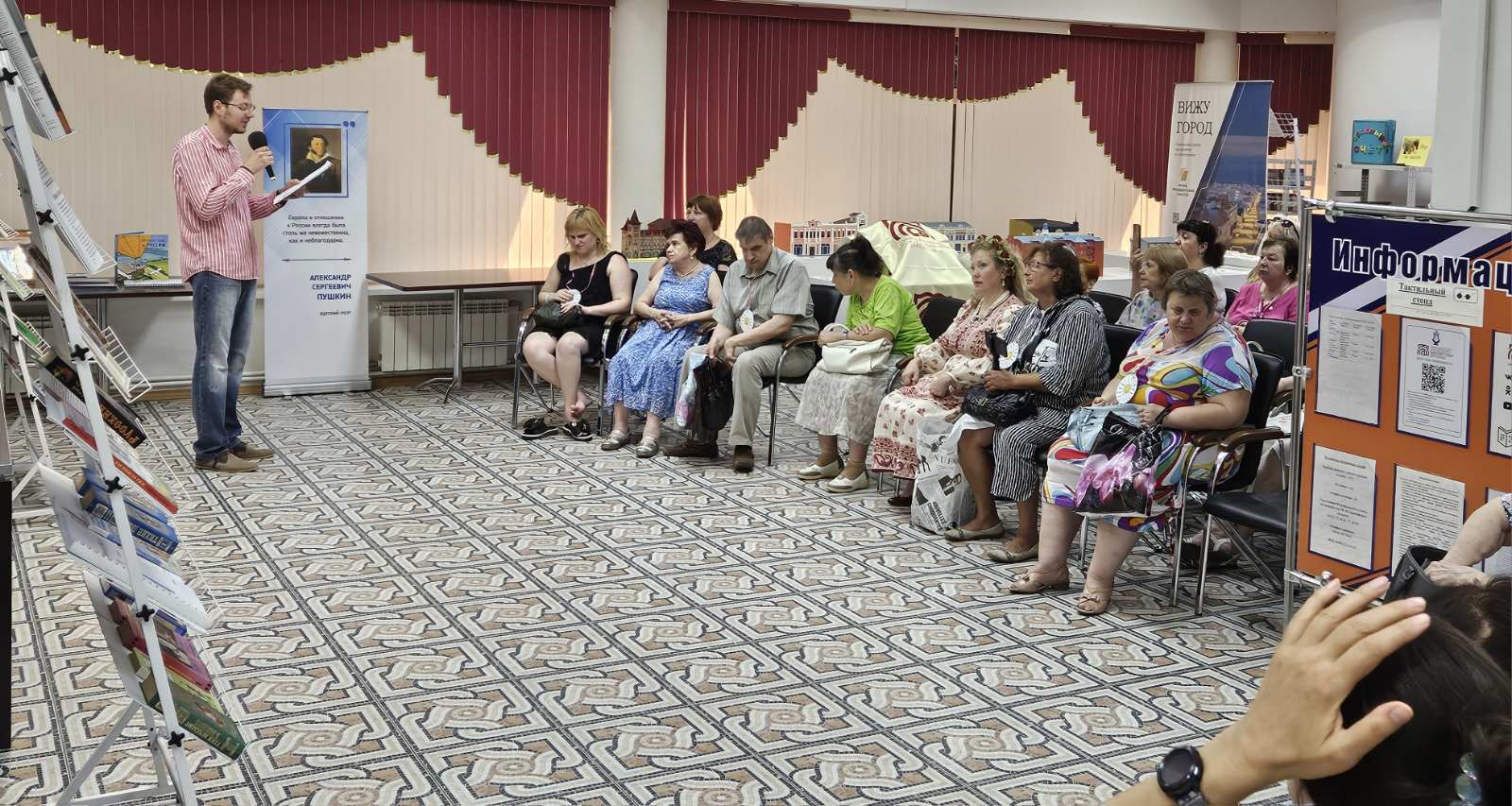 Летний читальный зал был празднично украшен, всех гостей встречали волонтеры и вручали символ праздника – ромашка.