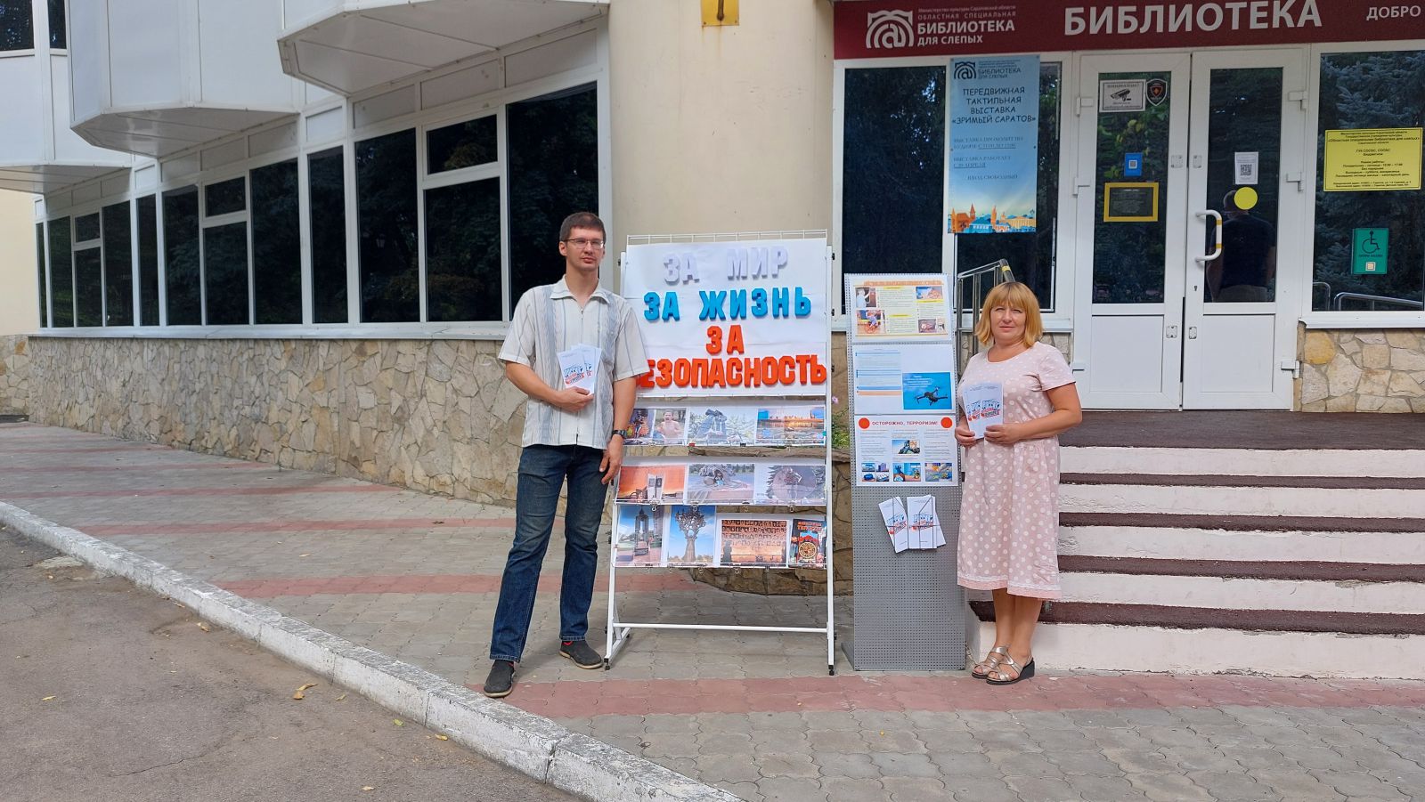 Для читателей и всех посетителей Детского парка Центр социально-значимой и правовой информации библиотеки в течение дня проводит информационную акцию «Россия против террора». Участников акции познакомили с выставкой «За мир! За жизнь! За безопасность!». Все присутствующие получают информационный буклет, посвященный основным правилам поведения в случае возникновения террористического акта.