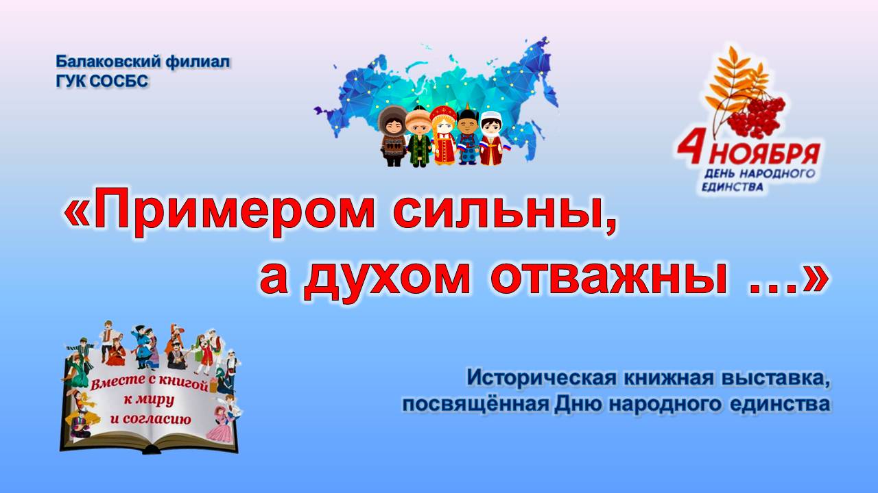 В Балаковском филиале Областной специальной библиотеки для слепых работает историческая книжная выставка «Примером сильны, а духом отважны…», посвящённая Дню народного единства.