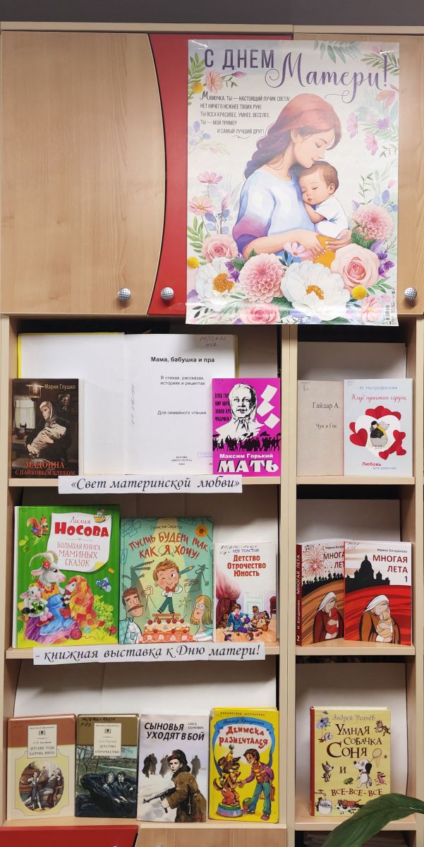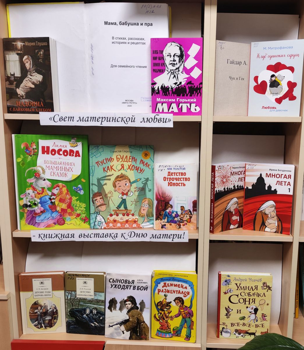 На книжной выставке «Свет материнской любви» представлены книги, главными героинями которых являются матери.