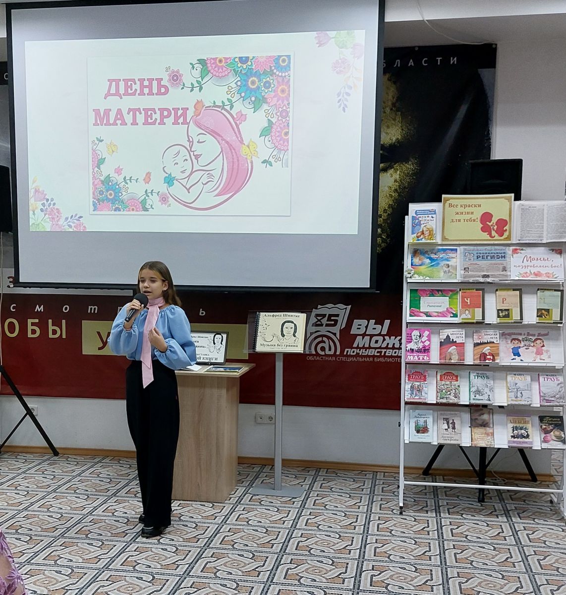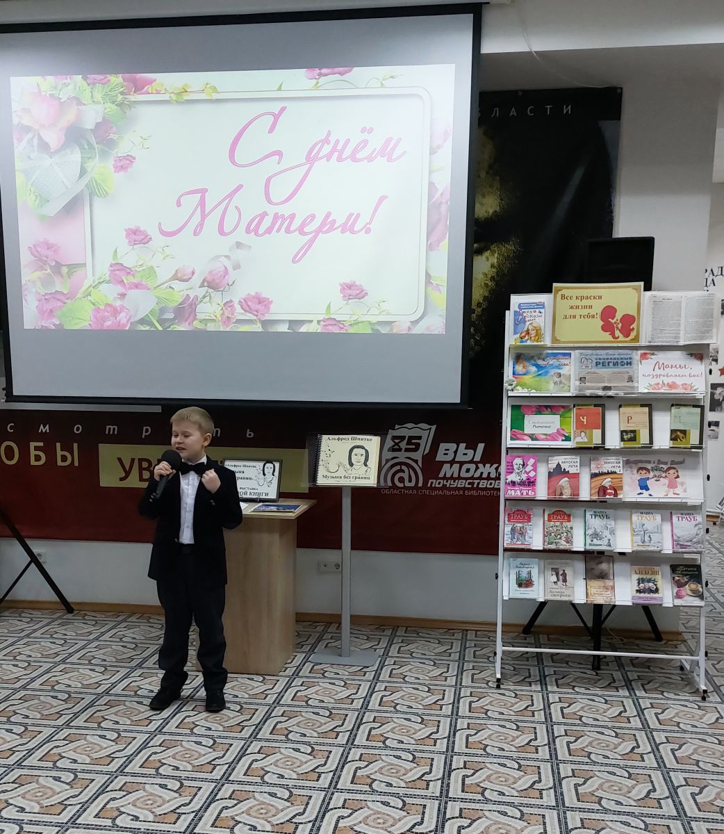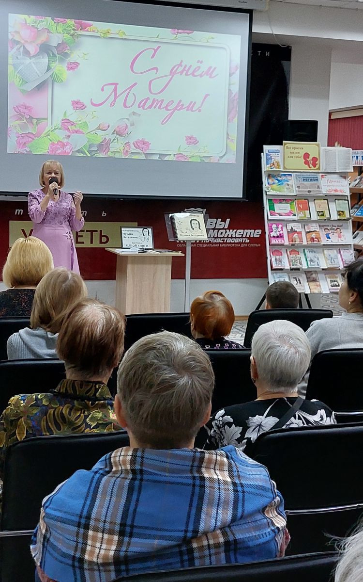 В Областной специальной библиотеке для слепых прошёл литературно-музыкальный вечер, посвящённый Дню матери. Этот праздник стал прекрасной возможностью для читателей и гостей библиотеки выразить свою благодарность и любовь к самым дорогим людям – мамам.
