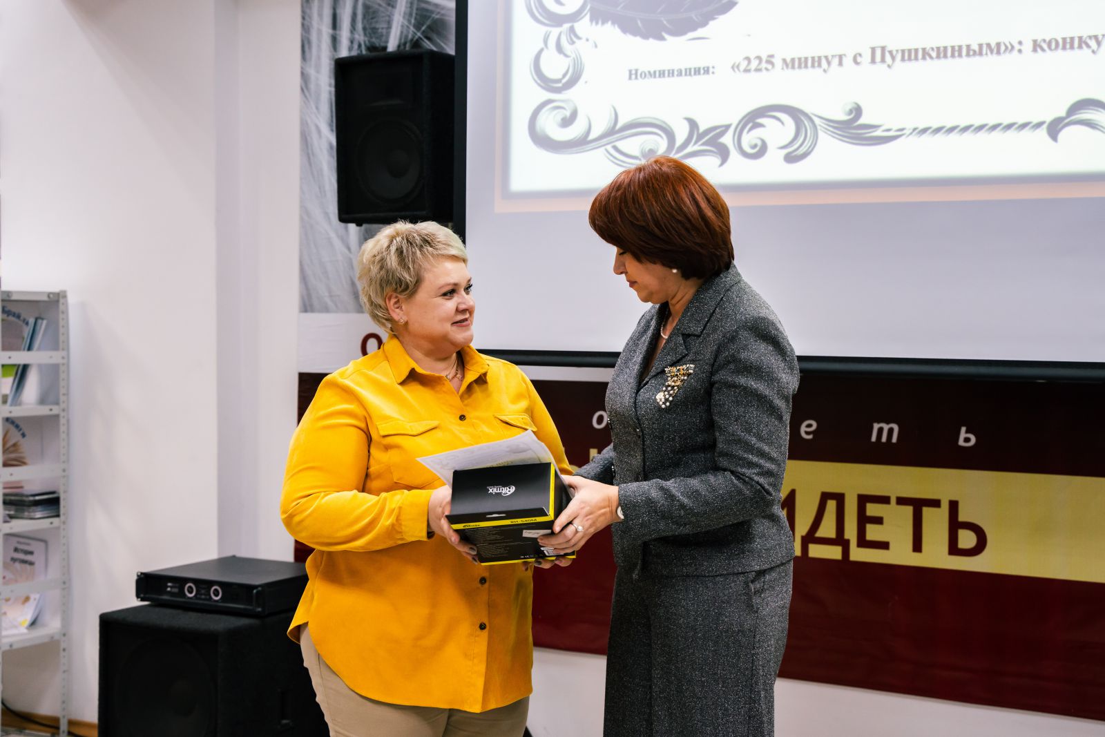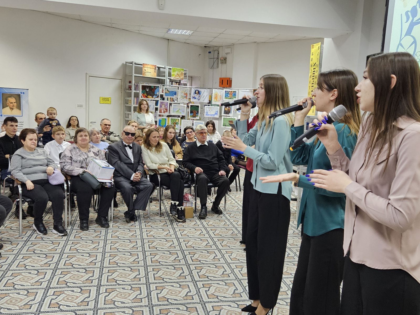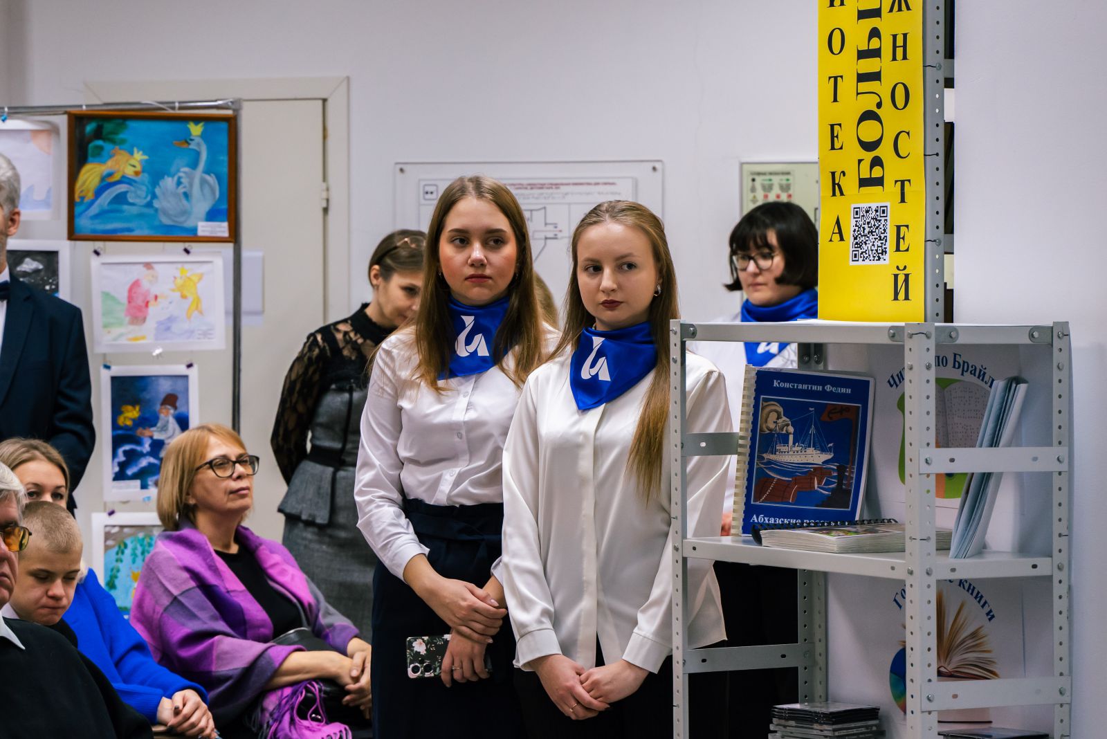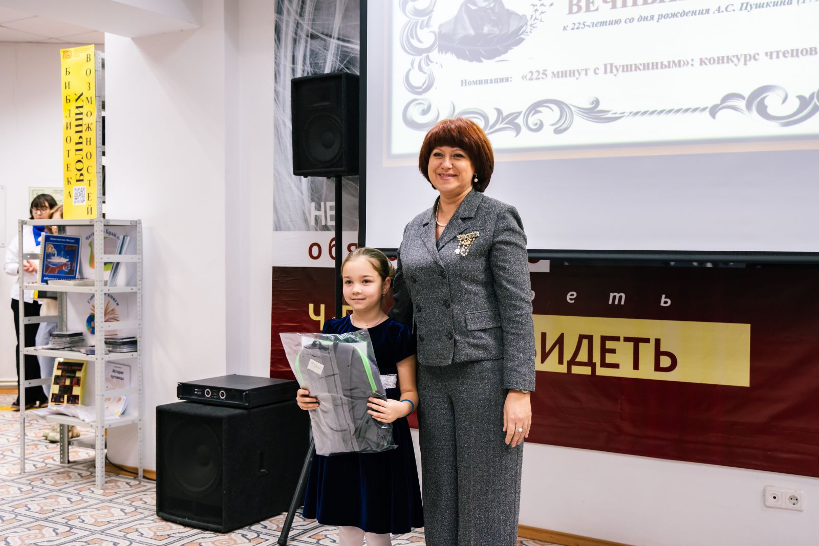Зал библиотеки был торжественно оформлен. Была представлена книжная выставка, посвященная Международному дню инвалидов, в специальных и в плоскопечатных форматах. Гости и участники мероприятия смогли прикоснуться к творчеству людей с ограничениями по зрению на выставке рисунков «Удивительный мир Пушкина».
