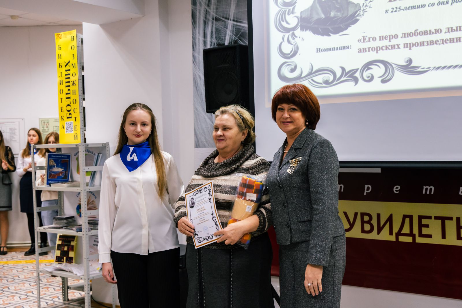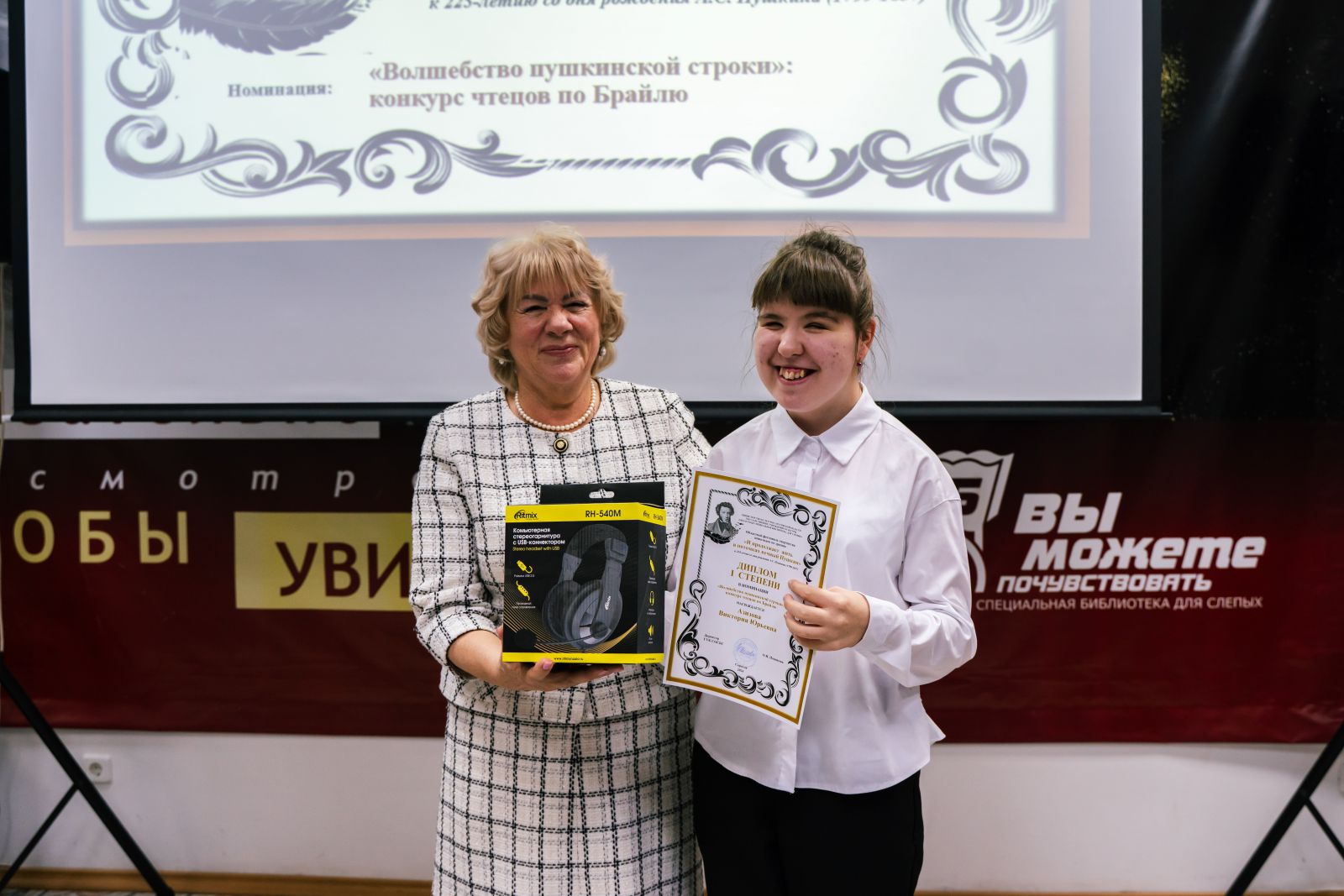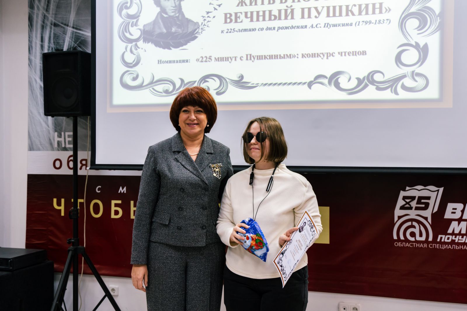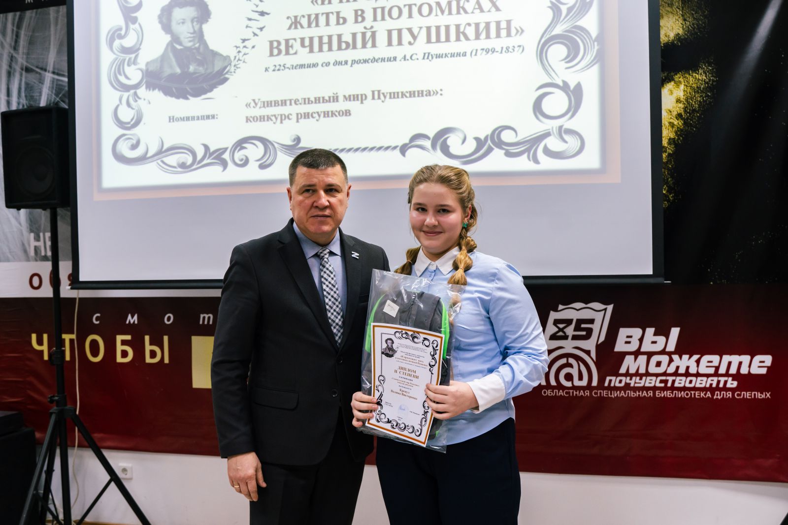 Состоялось торжественное награждение победителей областного фестиваля среди людей с нарушением зрения «И продолжает жить в потомках вечный Пушкин», посвящённого 225-летию со дня рождения русского поэта, писателя Александра Сергеевича Пушкина. Областной фестиваль проводился министерством культуры Саратовской области и ГУК «Областная специальная библиотека для слепых» по четырем номинациям в трех возрастных группах с мая по октябрь 2024 года.