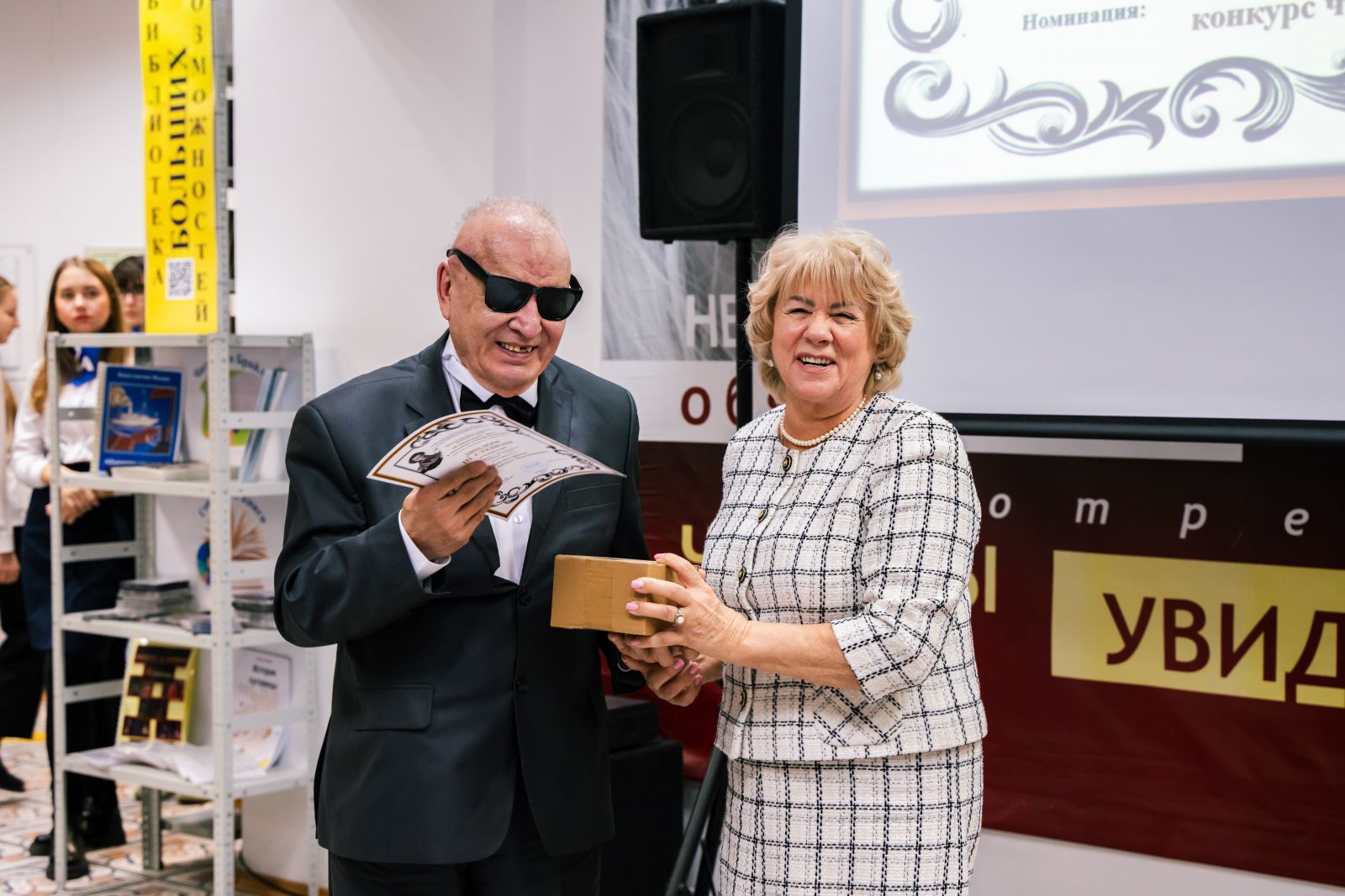 Прозвучало теплое приветствие от заместителя председателя Саратовской областной организации общероссийской общественной организации инвалидов «Всероссийское ордена Трудового Красного Знамени общество слепых» Геннадия Валентиновича Генералова. Он отметил тесное сотрудничество Всероссийского общества слепых с Областной специальной библиотекой для слепых.