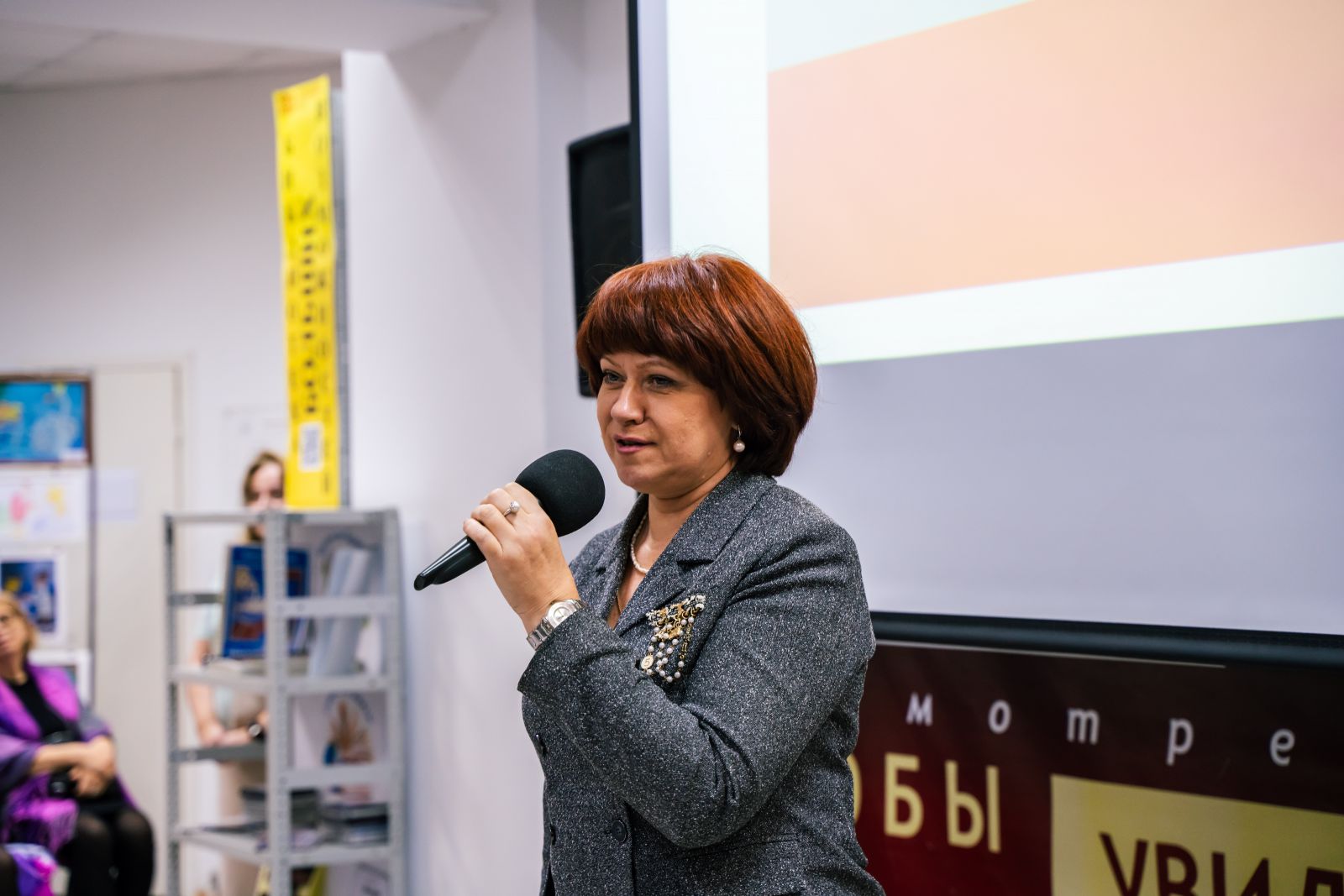 Первый заместитель министра культуры Саратовской области Елена Владимировна Познякова поприветствовала всех присутствующих в зале от имени министра культуры Саратовской области Наталии Юрьевны Щелкановой. Елена Владимировна отметила, что Областная специальная библиотека для слепых ежегодно организует и проводит областные фестивали, конкурсы для людей с нарушениями зрения и отметила важность таких значимых событий.