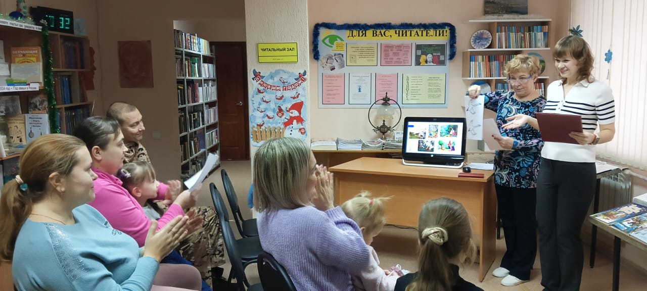 Для библиотеки гости приготовили свои выступления, поделки и рисунки, а сотрудники библиотеки подарили всем хорошее настроение, добрые пожелания и сладости.