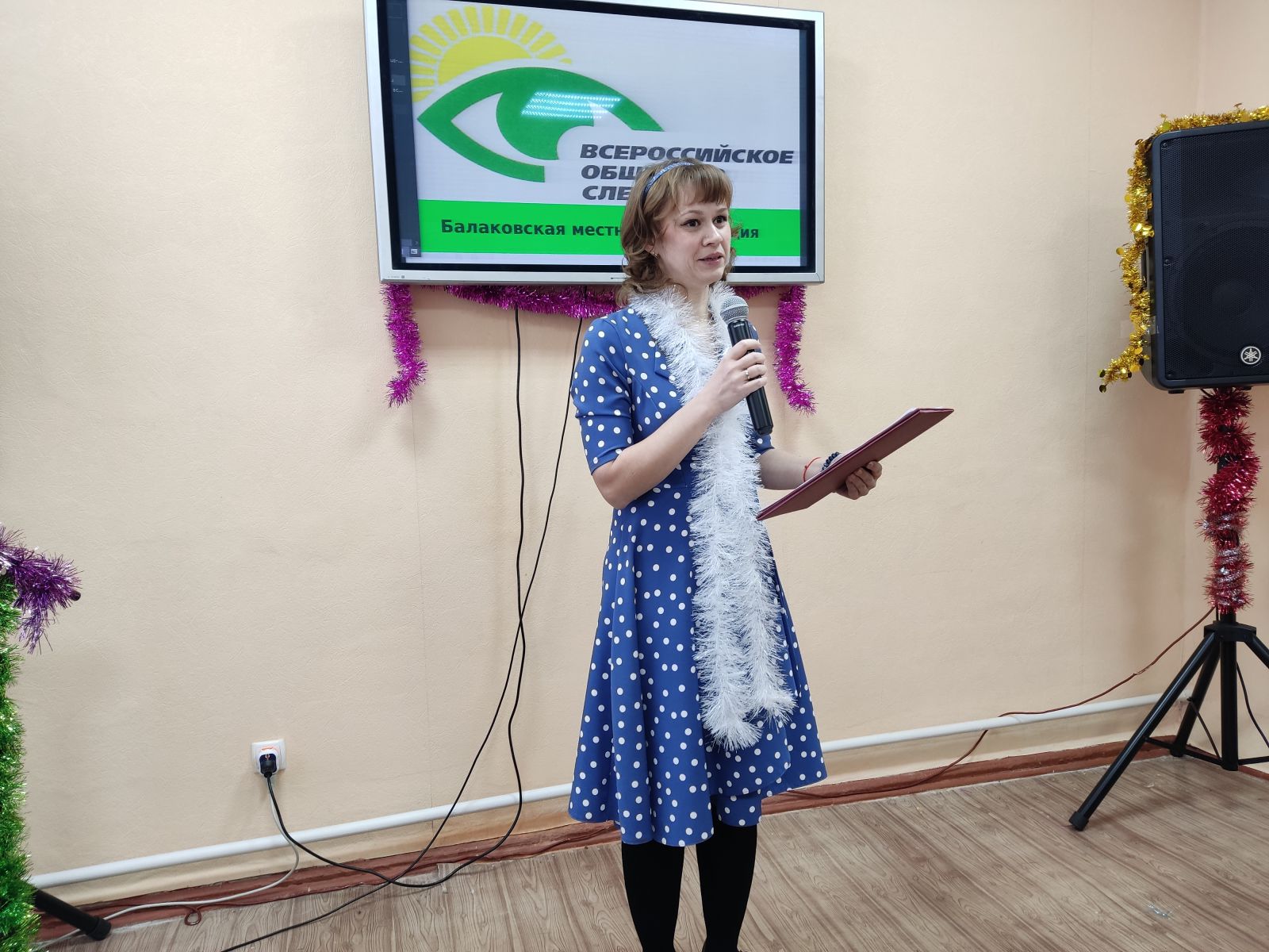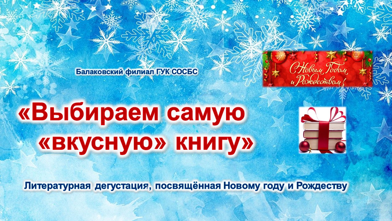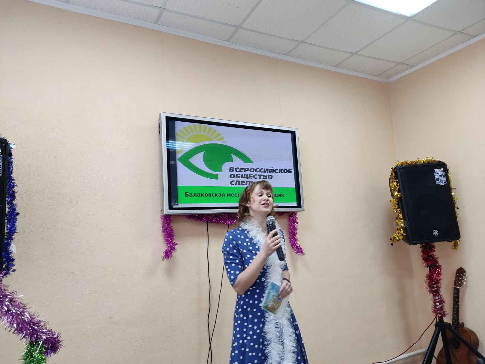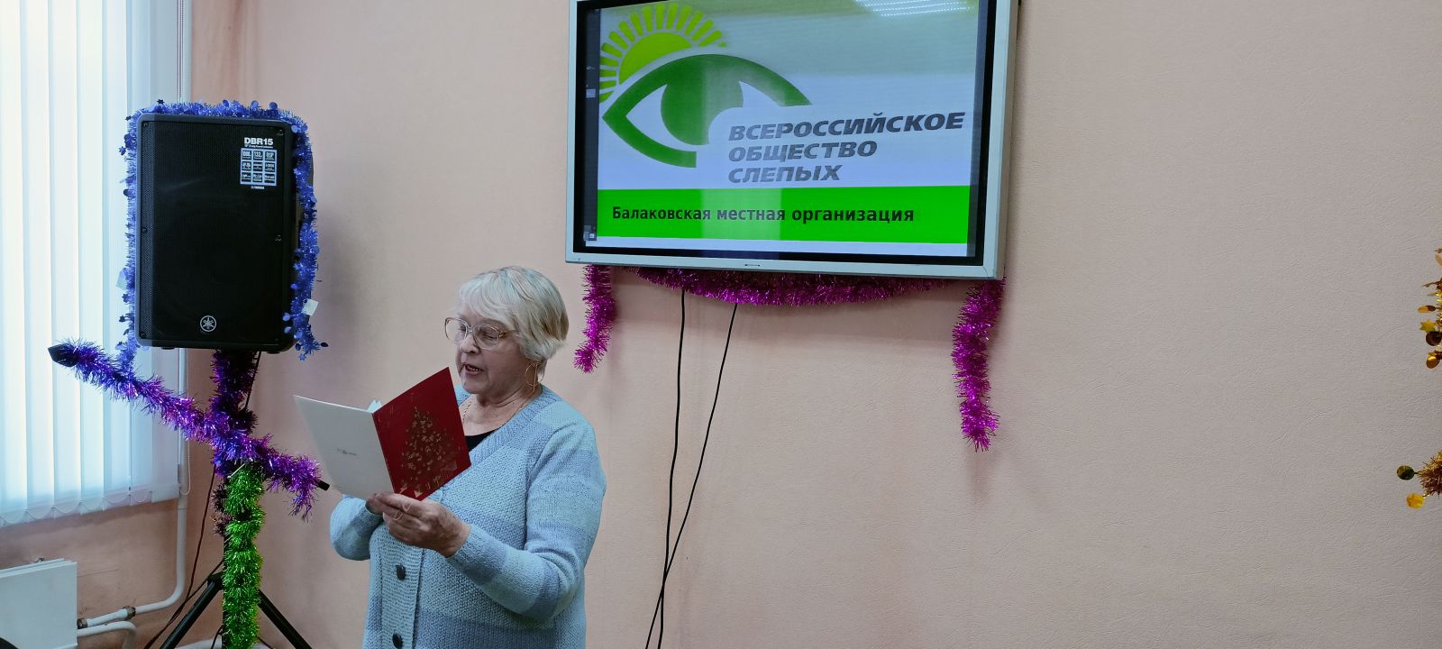 Балаковский филиал Областной специальной библиотеки для слепых подготовил для членов Балаковского общества слепых и читателей библиотеки литературную дегустацию, посвящённую Новому году и Рождеству. Мероприятие «Выбираем самую «вкусную» книгу» познакомило гостей с историей и традициями празднования Нового года и Рождества в разные времена и в разных странах; напомнило творчество писателей, поэтов и музыкантов на новогодние мотивы. Свободный микрофон предоставил возможность желающим показать свои таланты в разнообразных жанрах: в вокале, чтении поэтических произведений, в том числе собственного сочинения. Прозвучали стихи Александра Пушкина, Сергея Есенина, Андрея Дементьева и других авторов (классиков и современных), а также любимые всеми песни.