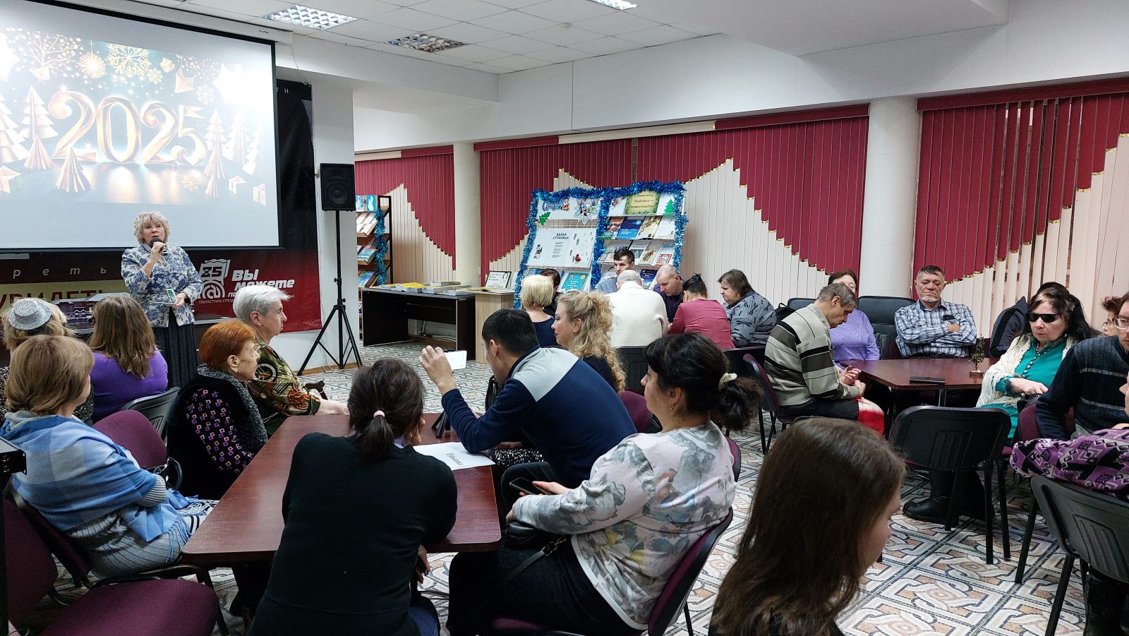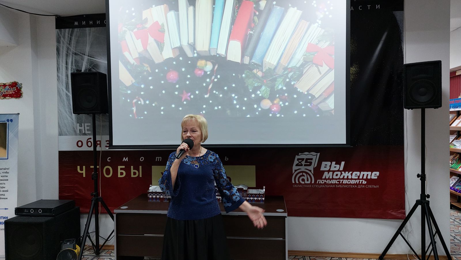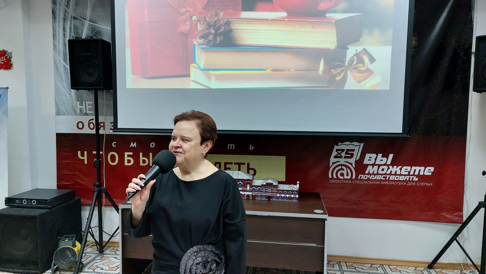 Директор Областной специальной библиотеки для слепых Ольга Новикова поздравила всех присутствующих с наступающим Новым годом, пожелала всем здоровья, благополучия в наступающем году и рождественских чудес. Ольга Ивановна зачитала поздравительную открытку от губернатора Саратовской области Романа Викторовича Бусаргина, передала теплые поздравлении министра культуры Саратовской области Наталии Юрьевны Щелкановой, общественных организаций. Ольга Ивановна коротко подвела итоги работы библиотеки и её филиалов, рассказала о самых значимых событиях 2024 года. Она отметила, что с 1 января 2025 года каждый желающий может оценить работу нашей библиотеки, пройдя по QR-коду.