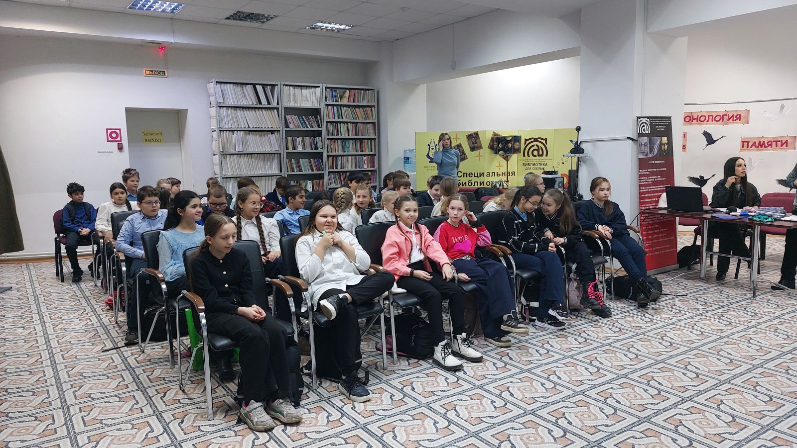 В Областной специальной библиотеки для слепых» прошёл час познания «Путешествие в космос: первопроходцы», посвящённый 91-му дню рождения первого космонавта Земли Ю.А. Гагарина и 60-летию со дня первого выхода человека в открытый космос, совершённого советским космонавтом А.А. Леоновым. На мероприятии присутствовали учащиеся 4 класса МОУ «Средняя общеобразовательная школа №2 с углубленным изучением отдельных предметов им В.П. Тихонова».