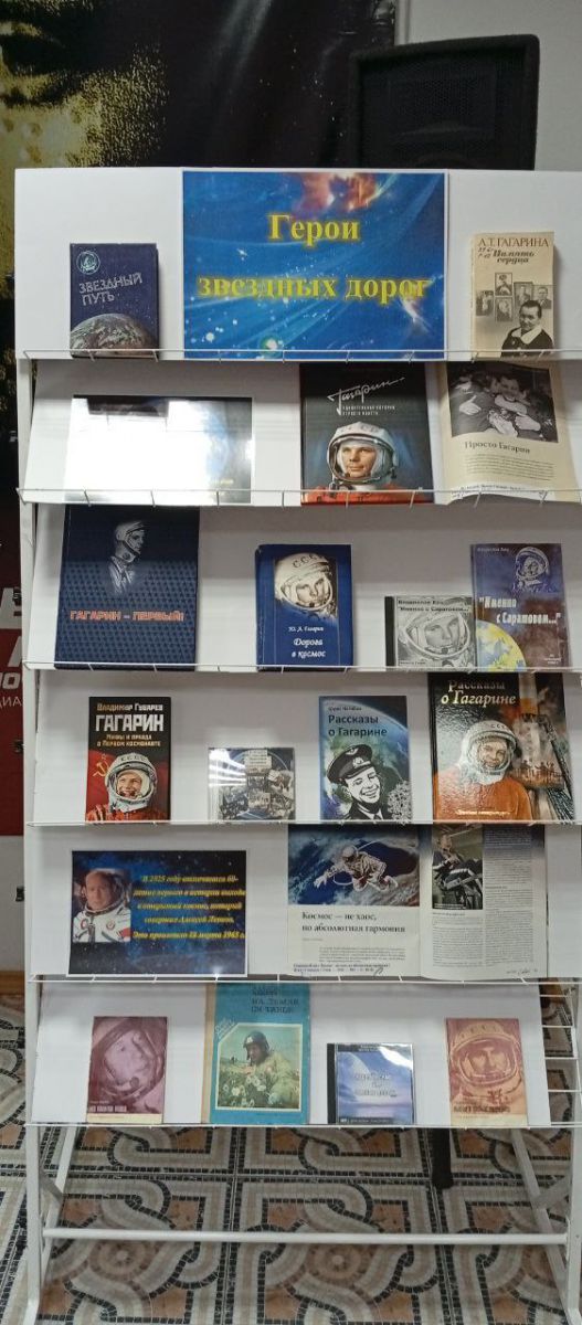 К мероприятию сотрудники центра адаптивного чтения подготовили книжную выставку «Герои звездных дорог», на ней представлена литература о первооткрывателях космической эры, о первом космонавте Земли Ю. Гагарине, а также о человеке покорившем космическое пространство А.А. Леонове.
