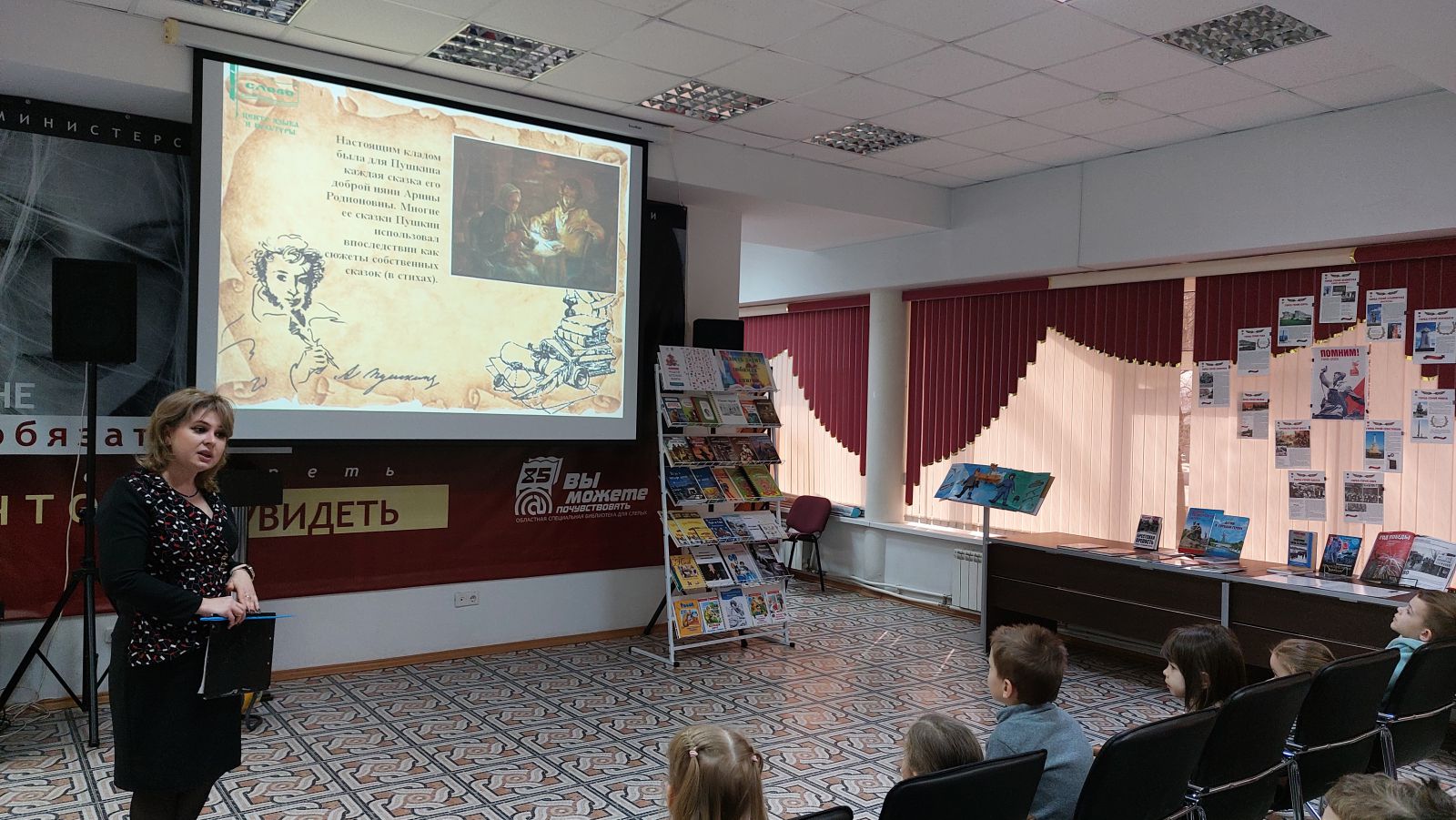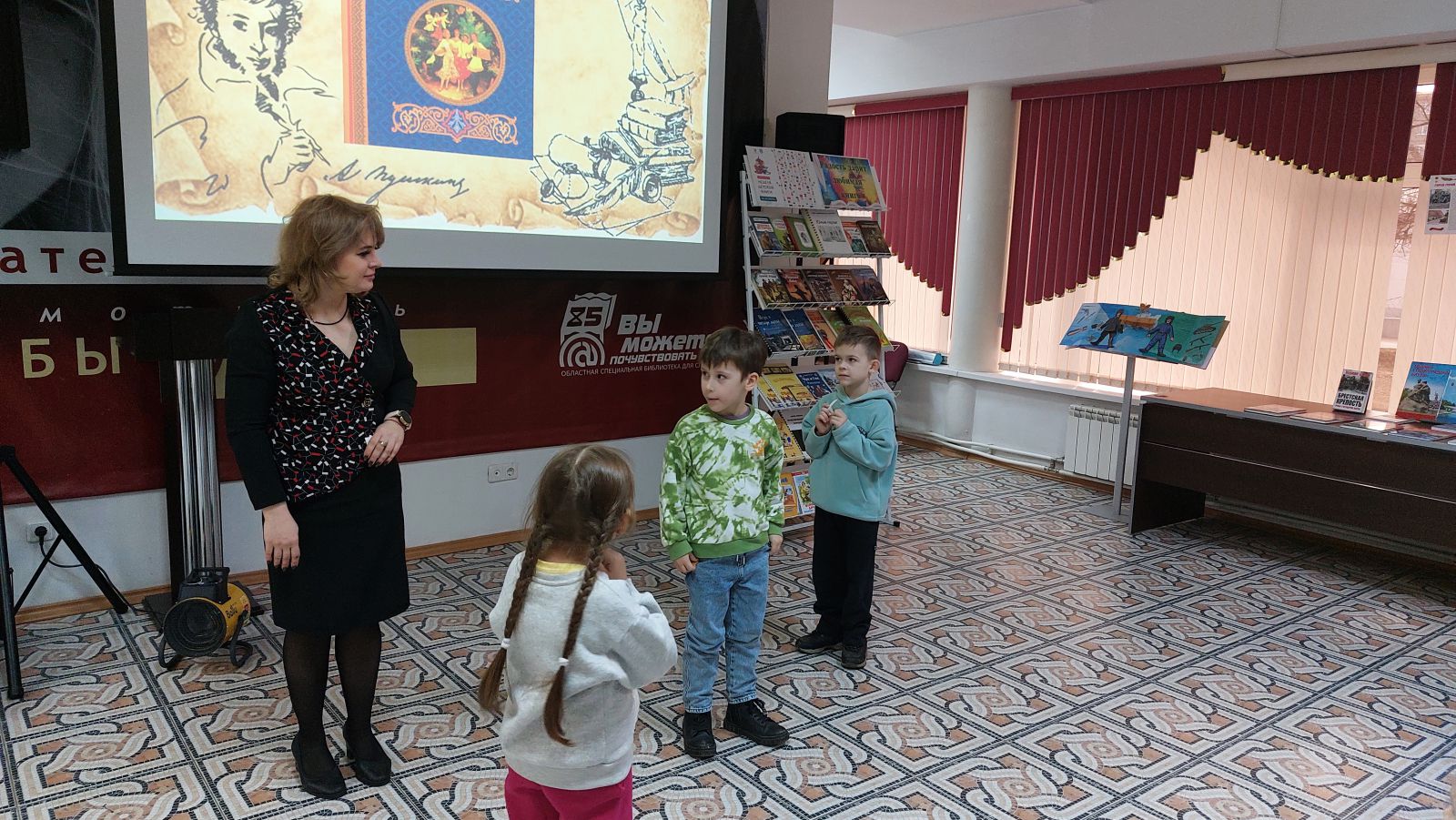 В рамках Всероссийской недели детской книги 28 марта 2025 года воспитанники Детского сада №219 «Колокольчик» г. Саратова посетили игру-викторину «Путешествие по сказкам А.С. Пушкина». Это замечательное мероприятие для них подготовили сотрудники центра адаптивного чтения Областной специальной библиотеки для слепых совместно с методистом Центра языка и культуры «Слово» Натальей Константиновной Удовиченко.
