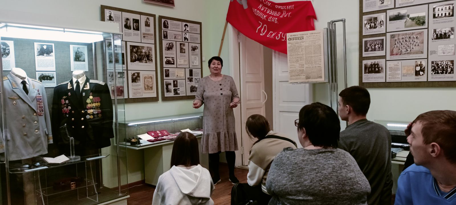 Сотрудники музея рассказали, какой вклад внести балаковцы в приближение Великой Победы. Воспитанники ГБОУ СО «Школа-интернат для обучающихся по адаптированным образовательным программам г. Балаково» с неподдельным интересом слушали рассказ экскурсовода. Ребята узнали о трудных годах войны, о том, какой ценой досталась Победа нашему народу, о героях-балаковцах, сражавшихся за свободу Отечества, их военные истории, увидели фотографии этих героев, письма, ордена, каски, фляжки и многие другие военные принадлежности, бережно хранящиеся в фондах музея и напоминающие о войне, о людях, защищавших Родину. Не только солдаты на фронте ковали победу. В тылу, не жалея сил, наши земляки трудились на предприятиях, в колхозах, продолжая работу и после смены. И дети в годы войны помогали фронту, чем могли. Экскурсия в рамках 80-летия Великой Победы познакомила учащихся с выставкой «Дети Балаково в годы Великой Отечественной войны».