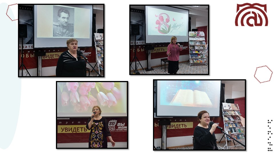 Ольга Ивановна отметила, что особую значимость ГУК «Областная специальная библиотека для слепых» в жизни незрячих как территорию социального взаимодействия, включенного в реабилитационный процесс. Наши читатели активно принимают участие в культурно-просветительских мероприятиях, реализует свой творческий потенциал. Библиотека помогает им почувствовать себя нужным членом общества и найти себе новых друзей. Ежегодно проводятся мероприятия, посвященные музыкальному искусству. Они помогают социальной адаптации и играют огромную роль в приобщении к книге и чтению, к читательской культуре.