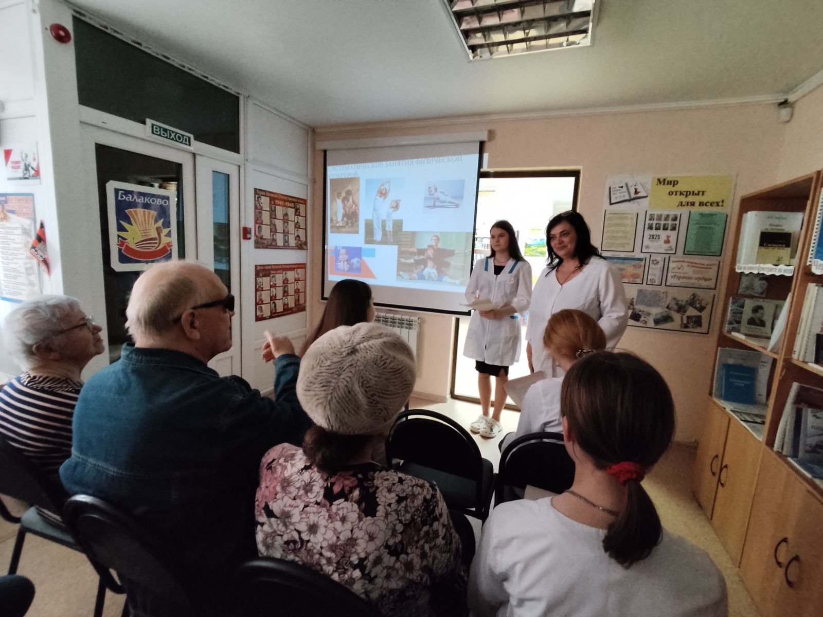 Балаковский филиал Областной специальной библиотеки для слепых организовал для своих читателей День специалиста-медика в рамках Всемирного дня здоровья. Сотрудники библиотеки рассказали о возникновении праздника, о его ключевой роли, целях и задачах; о формировании культуры здоровья в семье.