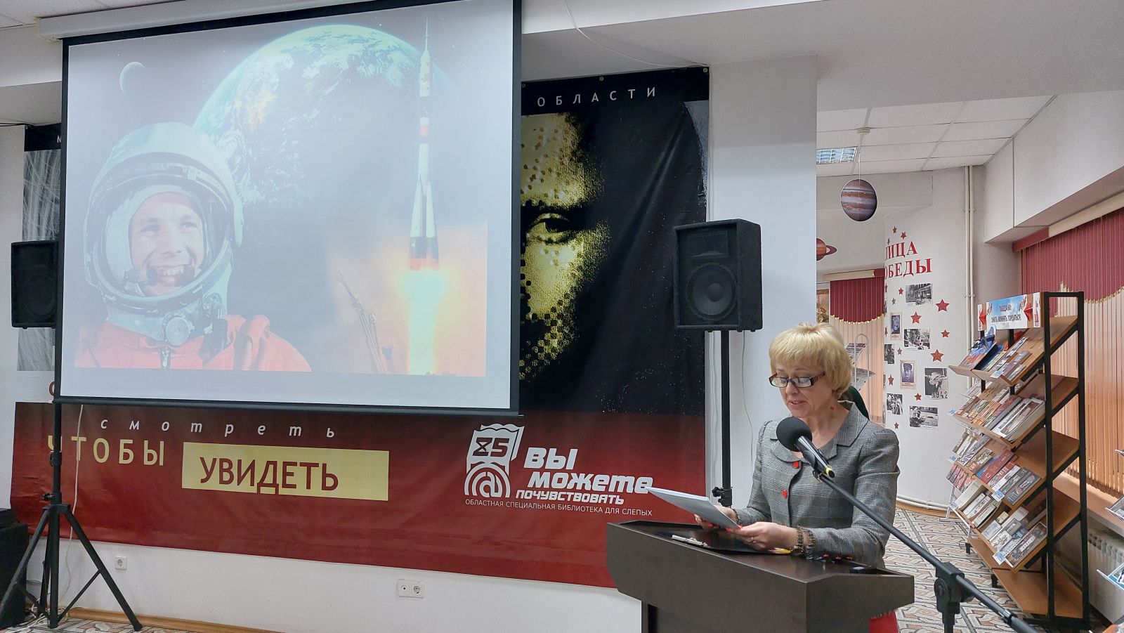 Директор Областной специальной библиотеки для слепых Ольга Ивановна Новикова в приветственном слове отметила, что Гагарин показал на что способен человек – русский парень открыл людям дорогу в неизведанный мир. Но только ли это? Думается, Гагарин сделал нечто большее – он дал людям веру в собственные силы, их возможности. Ольга Новикова напомнила присутствующим слова Константина Паустовского «Полет Гагарина будет волновать людей, пока будет существовать Земля».