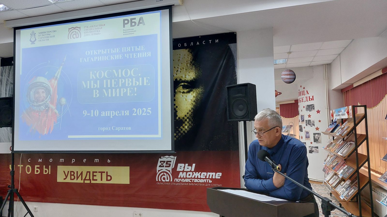 Ежегодно 12 апреля в России отмечается День космонавтики. В ГУК «Областная специальная библиотека для слепых» 9 и 10 апреля 2025 года прошли Открытые Пятые Гагаринские чтения «Космос. Мы первые в мире!». Организаторами Чтений выступили Министерство культуры Саратовской области, ГУК «Областная специальная библиотека для слепых», Российская библиотечная ассоциация, ФГБУК «Российская государственная библиотека для слепых».
