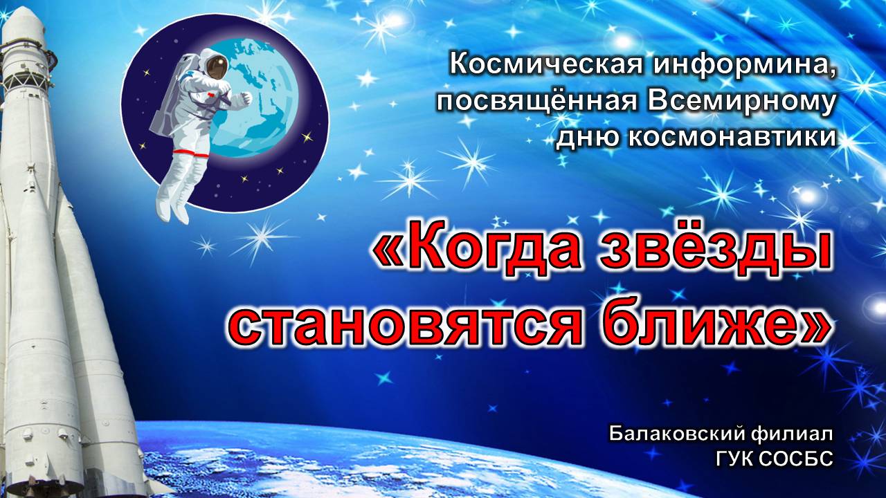 Балаковский филиал Областной специальной библиотеки для слепых подготовил космическую информину, посвящённую Всемирному дню космонавтики, для своих юных читателей - воспитанников детского сада компенсирующего вида №5 «Умка» (с группами для детей с нарушением зрения).