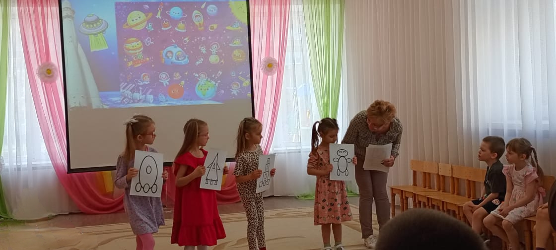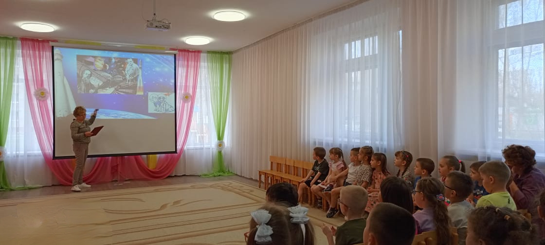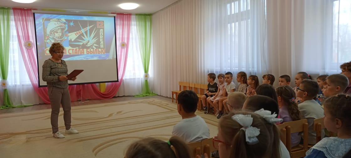 Дошкольники узнали об одной из выдающихся дат в мировой истории – Дне космонавтики, о том, что дата связана с первым полётом человека в космос, о первом космонавте Земли - Юрии Гагарине, о великих русских учёных, создавших первые искусственные спутники Земли и первые космические корабли, о том, как проходит подготовка космонавтов к полётам, о планетах Солнечной системы. Детям с удовольствием рассказывали стихи о космосе и космонавтах, отгадывали космические загадки, прошли «отбор» в отряд космонавтов, посмотрели видео о первом в истории полёте живых существ в космос - собак Белки и Стрелки, помогли «пришельцам» найти свои корабли и «слетали» в инопланетный зоопарк, узнав «Тайну третьей планеты».