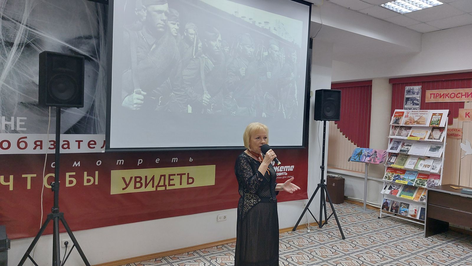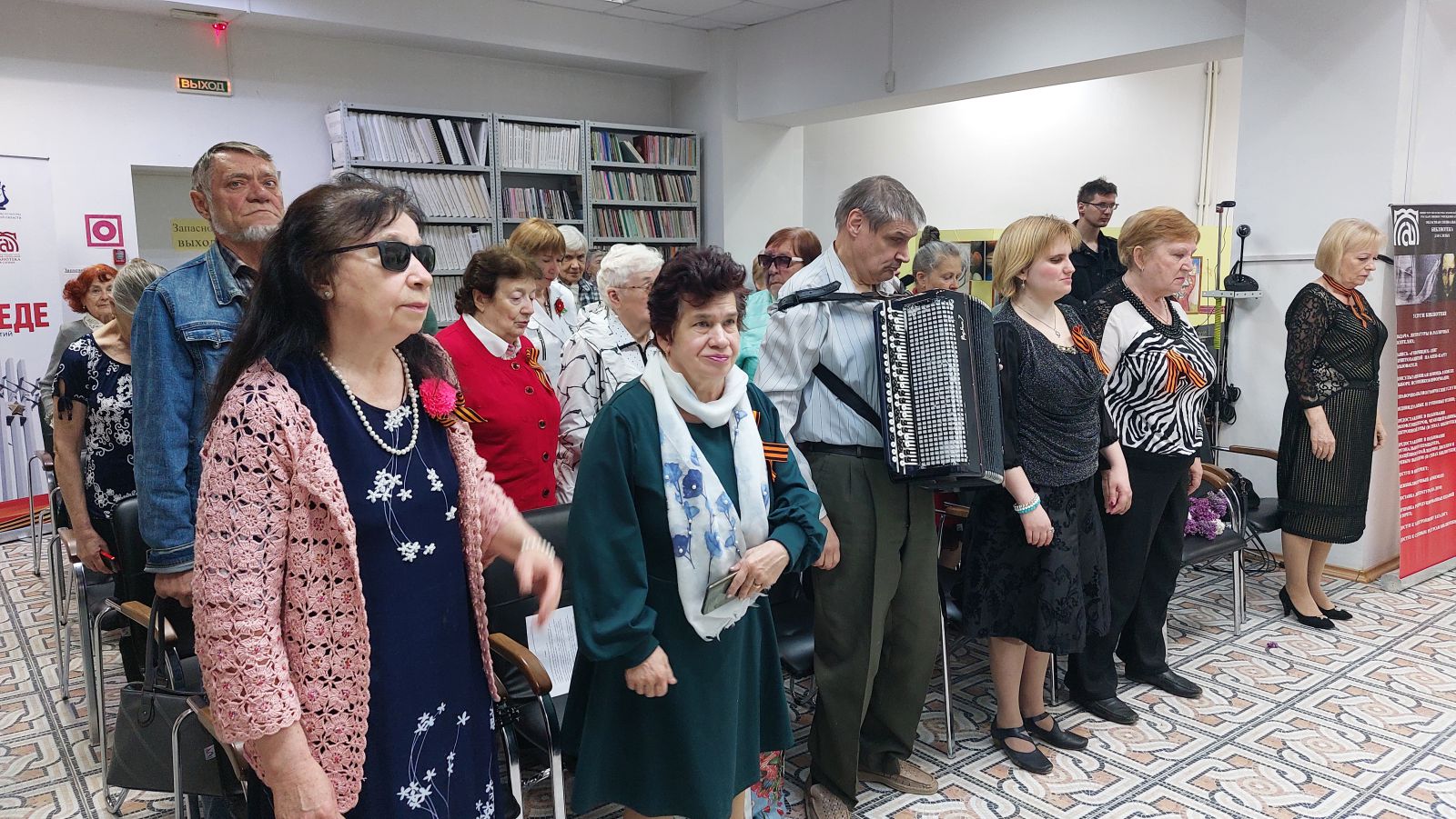 Весь зал горячо аплодировал песням времен Великой Отечественной войны в исполнении Оксаны Лады, Елены Зверевой. По-особому звучало музыкальное выступление в исполнении незрячей читательницы Ольги Куликовой «Бессмертный полк». Торжественность придавали песни в исполнении всего зала под аккомпанемент Алексея Стешина. Пронзительно прозвучала песня «Журавли» в исполнении Артема Бондарева.