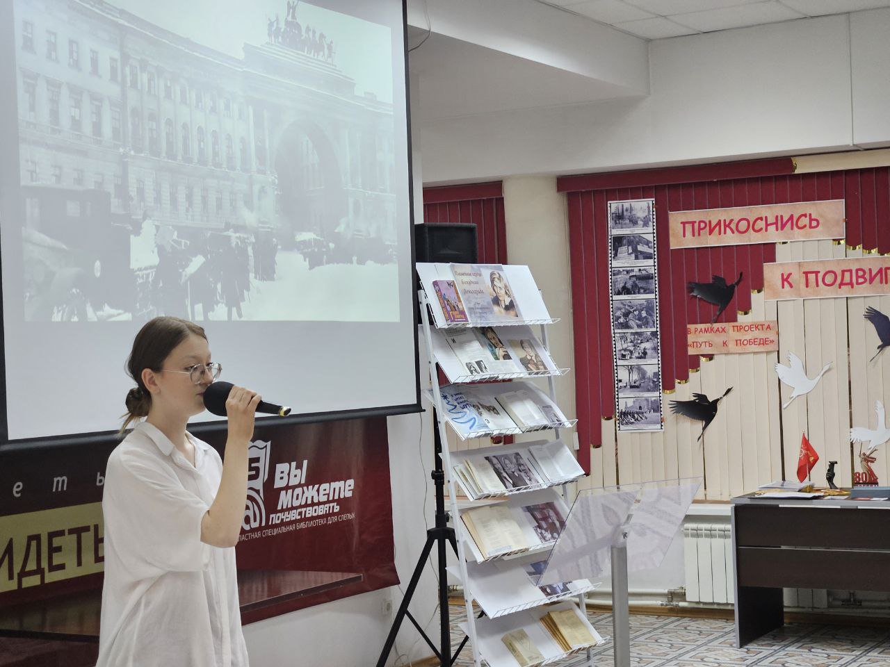 В Областной специальной библиотеке для слепых прошла литературная гостиная «Я сердце свое никогда не щадила», посвящённая 115-летию Ольги Берггольц. Ведущий мероприятия Артём Бондарев напомнил читателям биографию поэтессы. В исполнении учащихся детско-юношеский центр Фрунзенского района г. Саратова прозвучали стихотворения Ольги Берггольц – «Тебе, Победа!» в исполнении Тимофея Абрамова, «Нам от тебя теперь не оторваться…», отрывок из поэмы «Февральский дневник» в исполнении Марии Напольниковой, «Баллада о младшем брате» в исполнении Ростислава Мотрука и Платона Шарового.