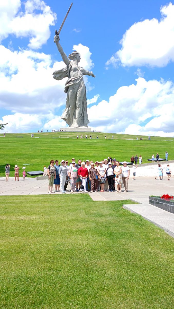 Следующим этапом экскурсии стало посещение памятника-ансамбля «Героям Сталинградской битвы», расположенного на Мамаевом кургане. Экскурсовод, сопровождающий группу «особенных» туристов, подробно ознакомил их с основными композициями. «Вводная композиция-горельеф «Память поколений»», «Аллея пирамидальных тополей», «Площадь Стоявших насмерть», «Стены-руины», «Площадь Героев», «Монументальный рельеф», «Зал Воинской славы», «Площадь Скорби», «Воинское мемориальное кладбище», а также главный монумент «Родина-мать зовёт!» - покорили всех. Каждый элемент, буква, рисунок, камушек несет в себе память! Память о людях, событиях, судьбах. Волнение, скорбь, гордость, печаль – чувства, которые испытывают посетители Мамаева кургана.